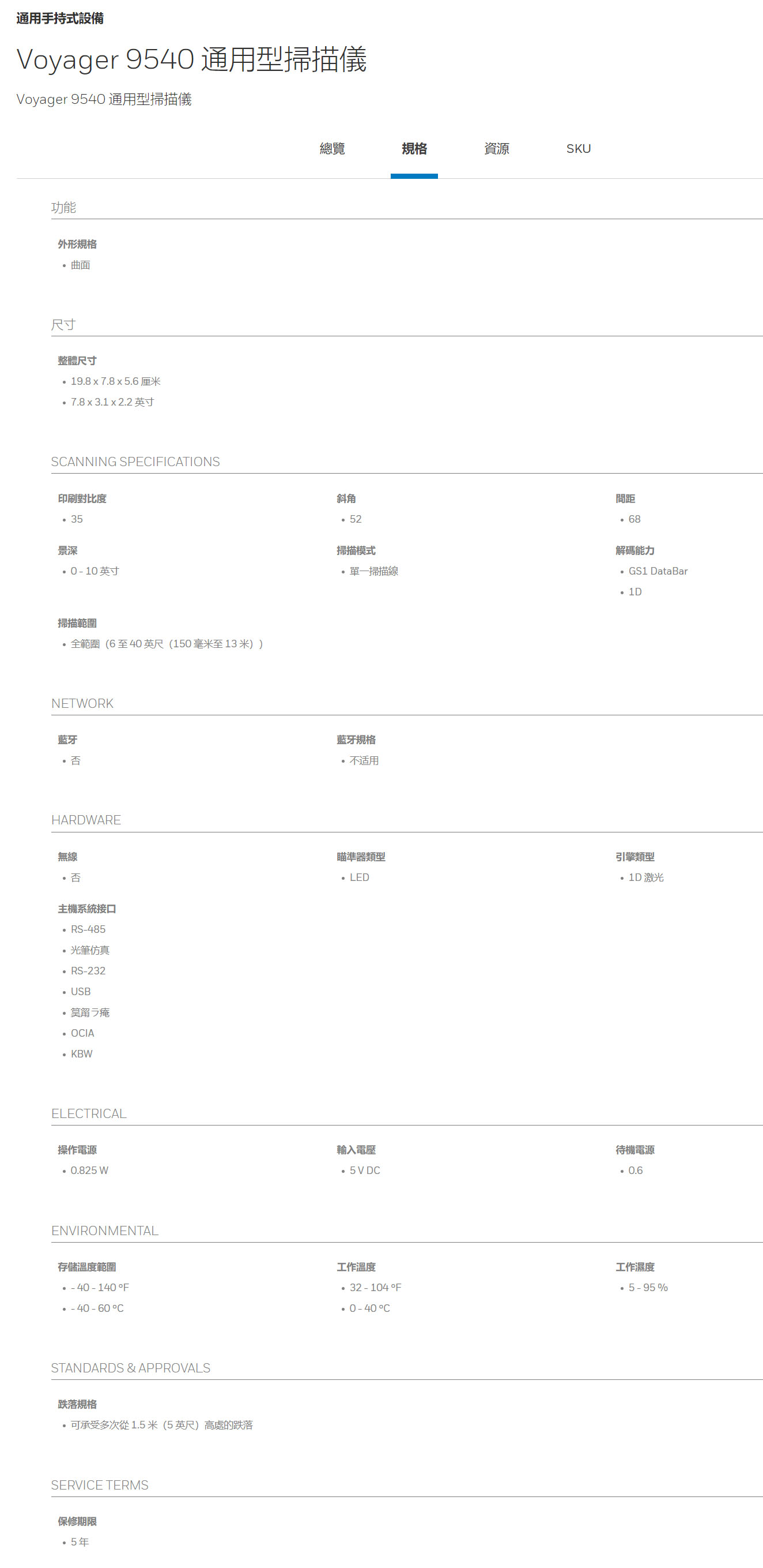 Voyager 9540 通用型掃描器