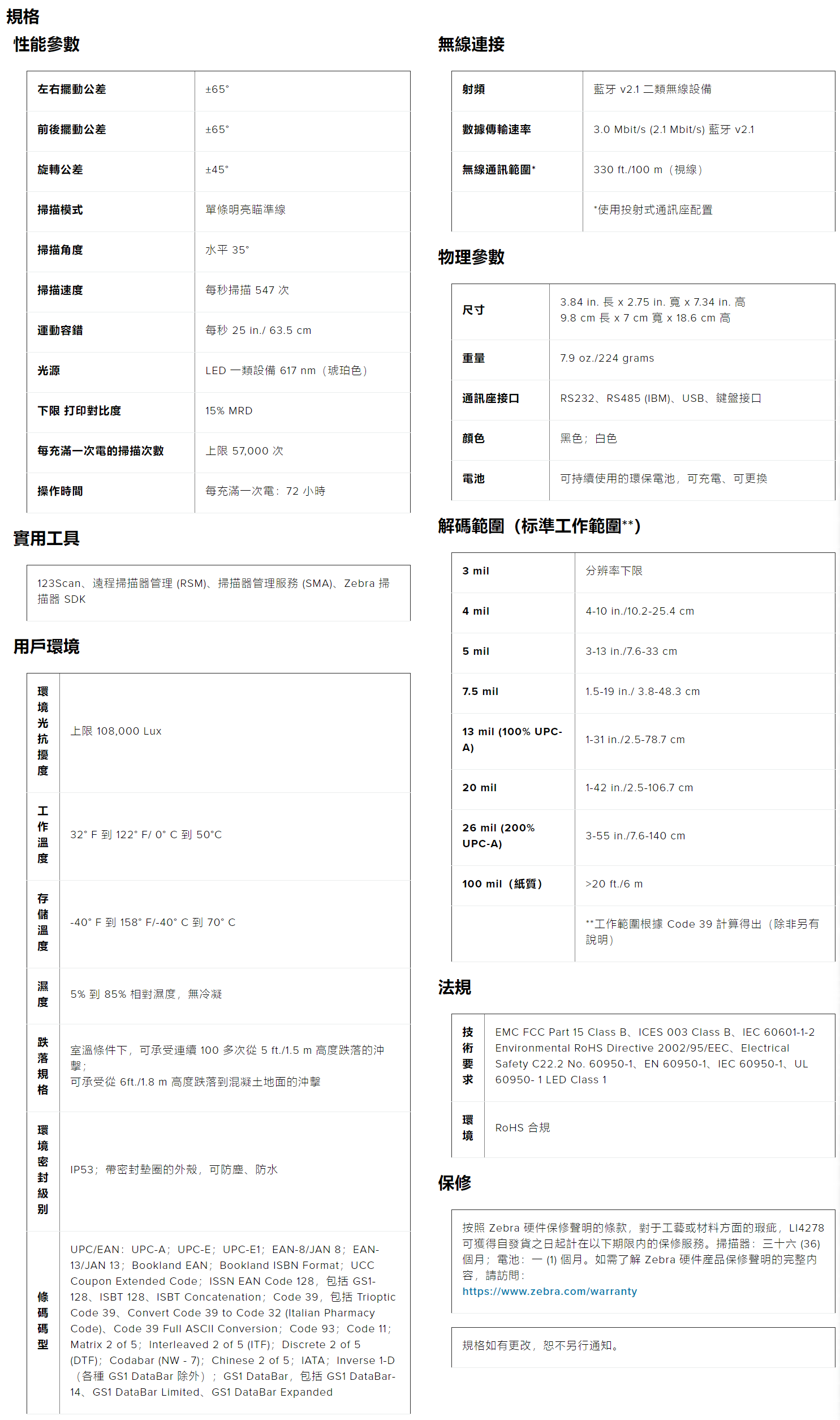 每次充電後可進行相當多次數的掃描,而且即使在非常高的使用強度下,也能遠遠滿足一整個班次的工作使用需求;可拆卸電池可確保較長的使用壽命。