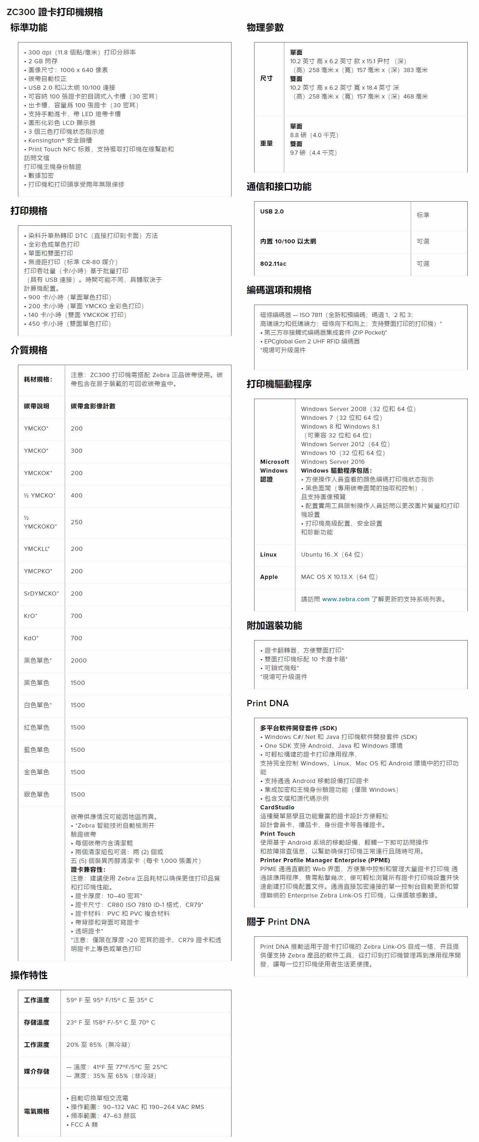憑藉 ZC300 突破性的簡單易用,您可以隨時隨地列印您需要的證卡。您可以利用提供特殊顏色和特殊效果的新型碳帶,列印單面或雙面邊到邊彩色或黑白證卡。您可以通過精妙的工程設計實現按鈕式證卡列印,消除通常與證卡列印相關的幾乎所有難題。此類印表機採用隨處適用的精巧設計,讓您隨時隨地根據需要輕鬆添加證卡列印。而 Print DNA 提供一系列高價值解決方案,使得將證卡列印集成到應用程式中、設計證卡和支援印表機比以往更加簡單。