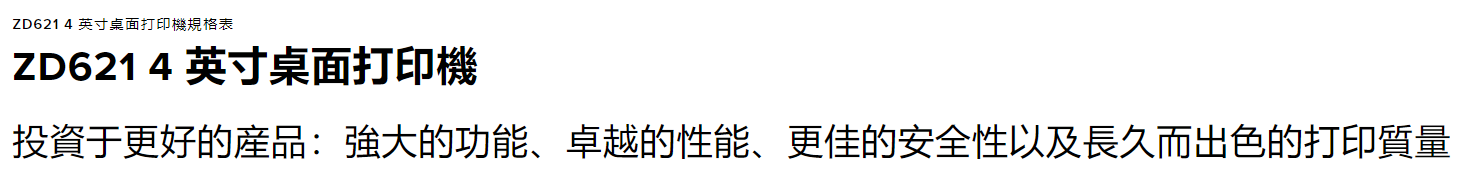 ZD621 繼承了久經考驗和暢銷的 GX 系列 和 ZD500 印表機的優勢,可提供新一代的卓越功能,包括出色的列印品質和超前適應性,為您帶來多年無憂的列印體驗。提供熱轉印和熱敏型號,提供可選的全彩色觸摸顯示幕。新增遠端系統管理功能,幫助您優化您的印表機、跟蹤耗材狀態並自動化耗材補充、確保安全性。