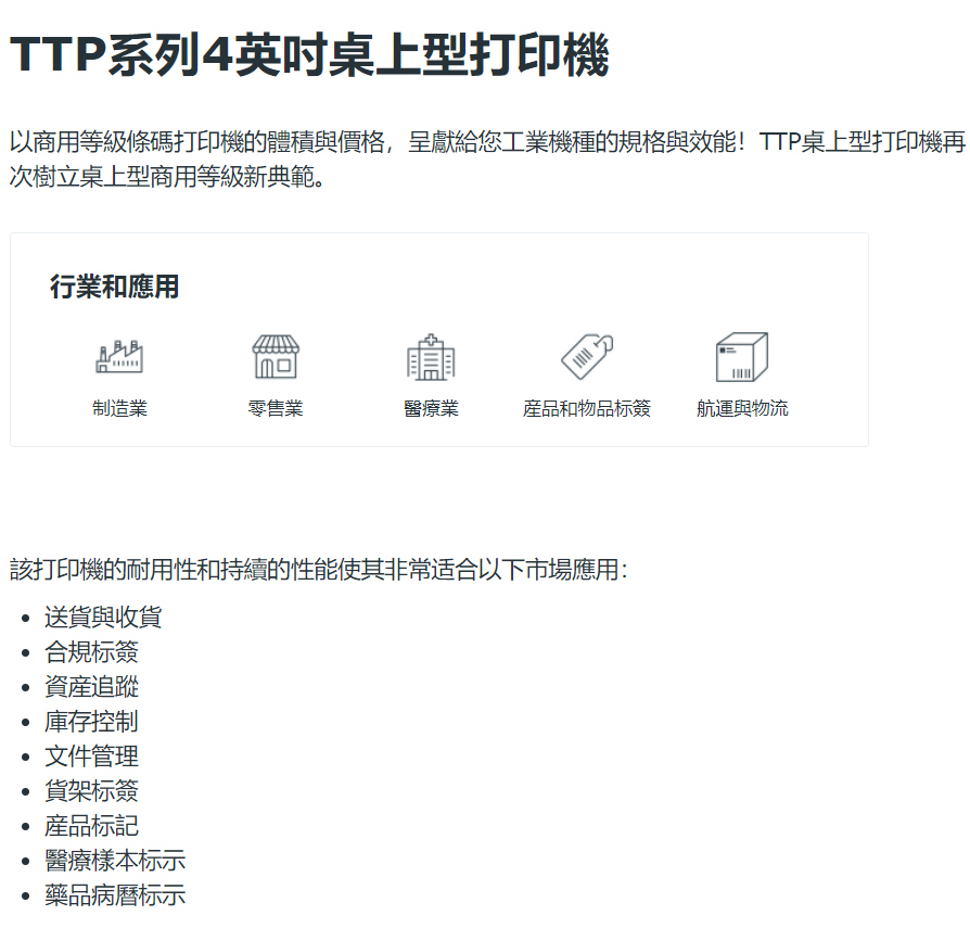上一篇:TTP-244 PRO 4英吋 桌上型 熱感式/熱轉式 條碼印表機