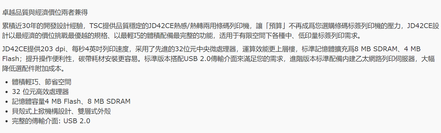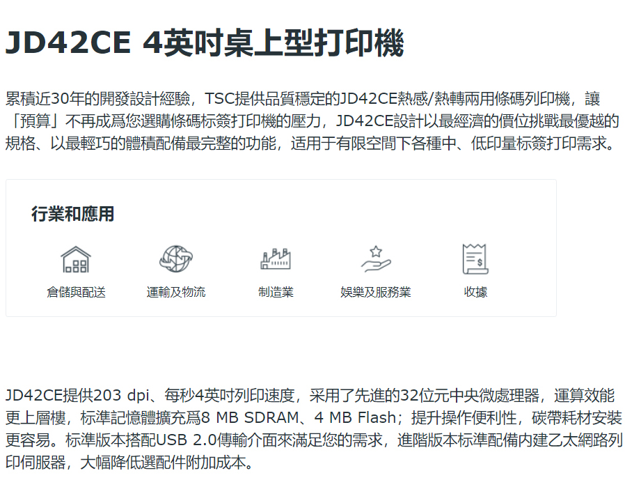 JD42CE 4英吋桌上型 熱感式/熱轉式 條碼印表機