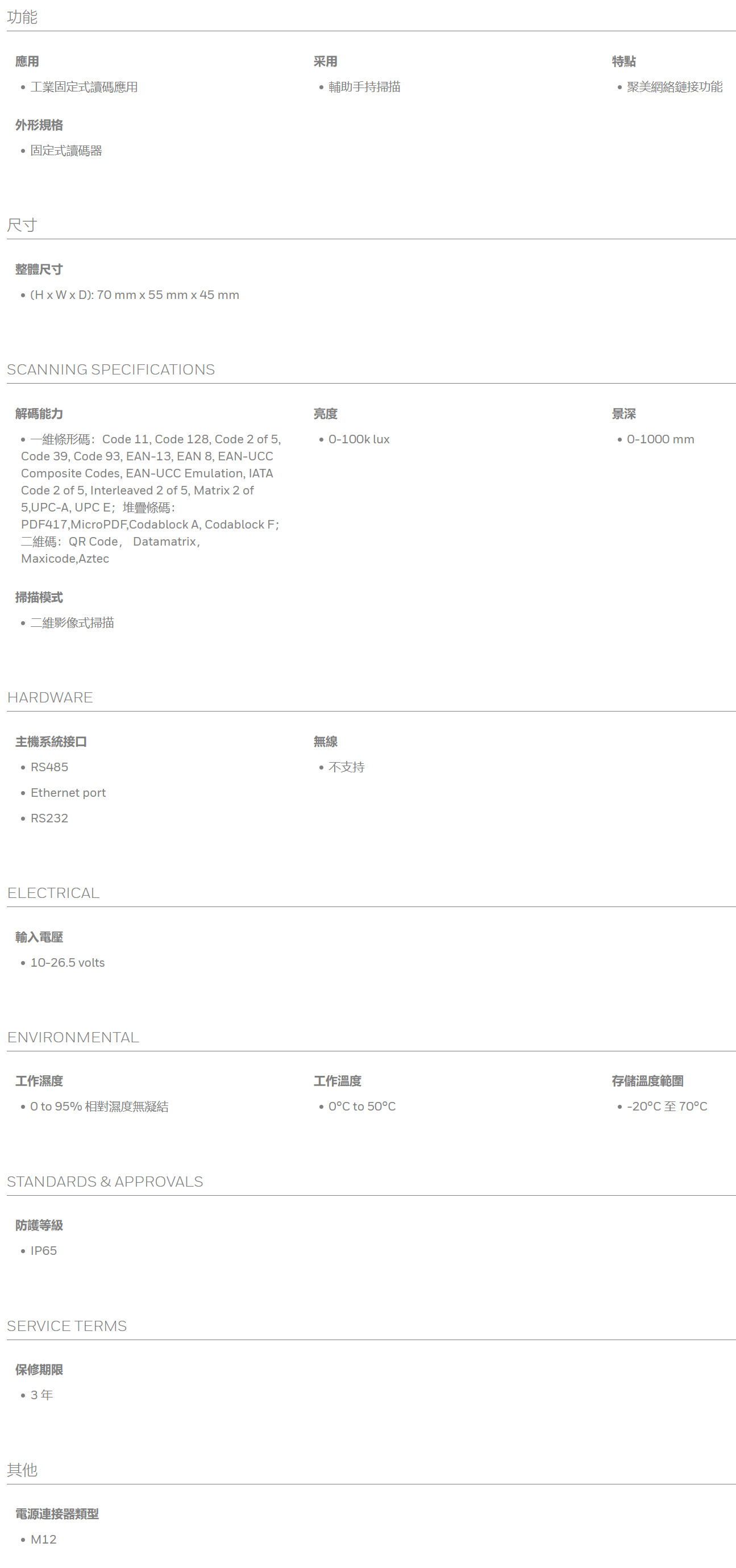 產品參數