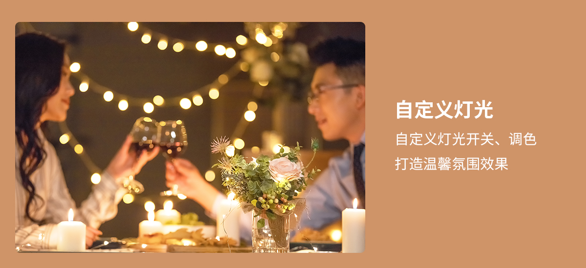 惊喜有时候并不需要太多,只是一顿温馨的晚餐,就足以,智能灯光助力烛光晚餐。