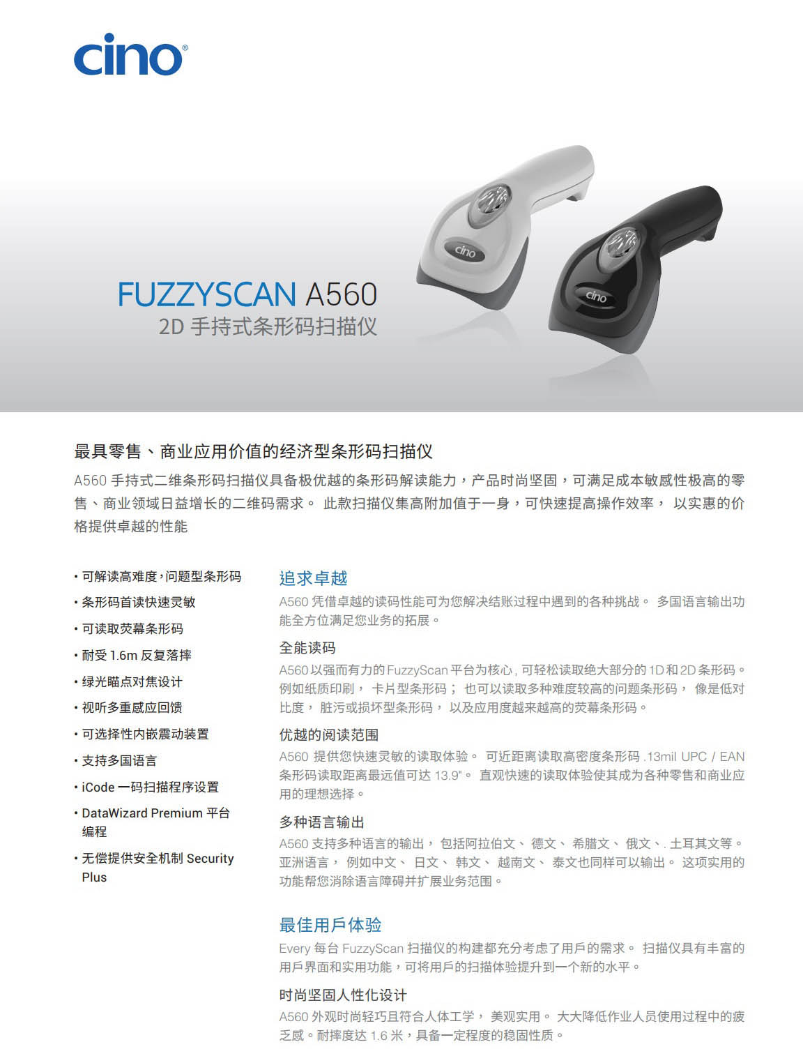 FUZZYSCAN A560 2D 手持式条形码扫描仪