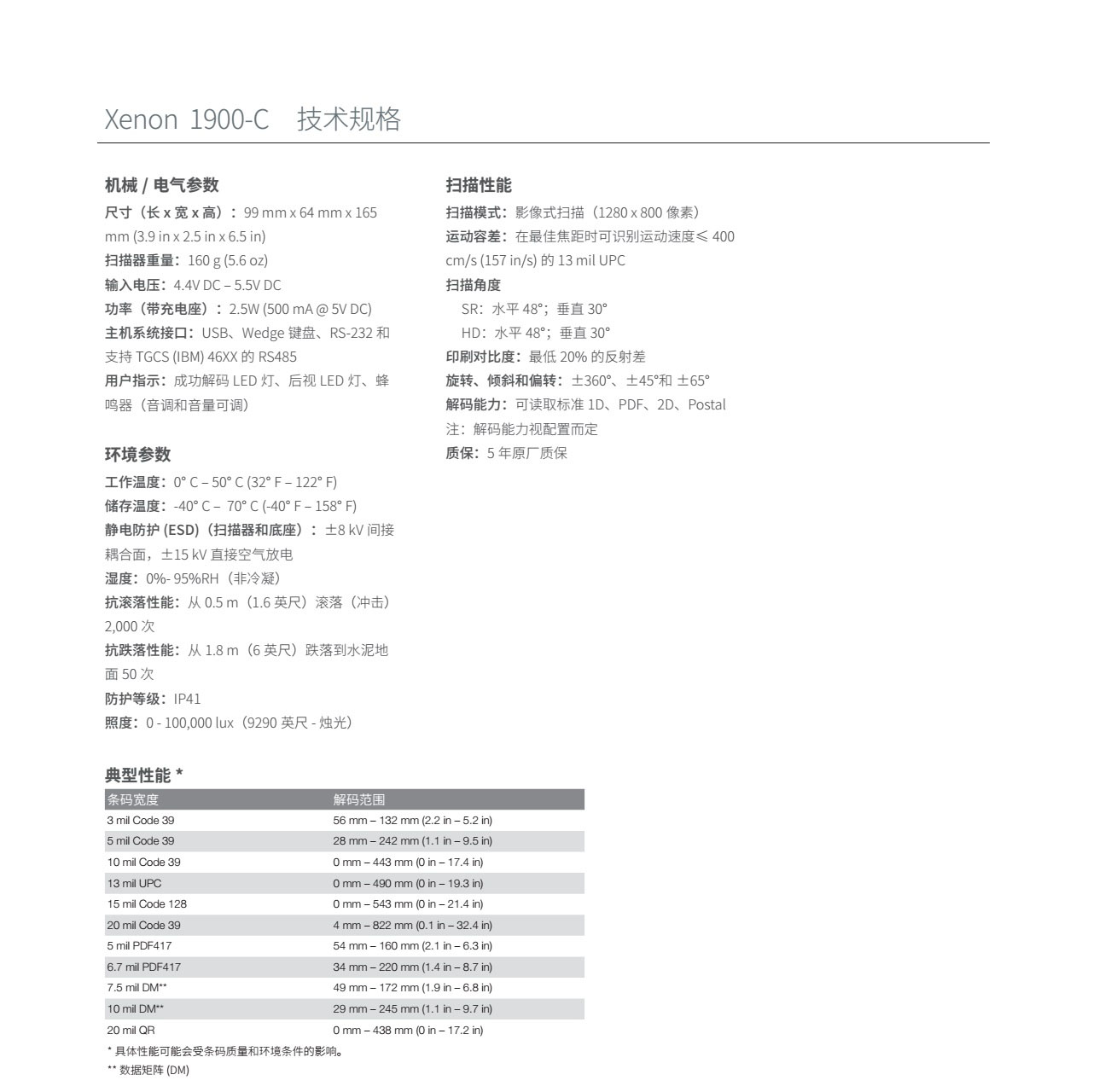 Xenon 1900-C 二维影像扫描器