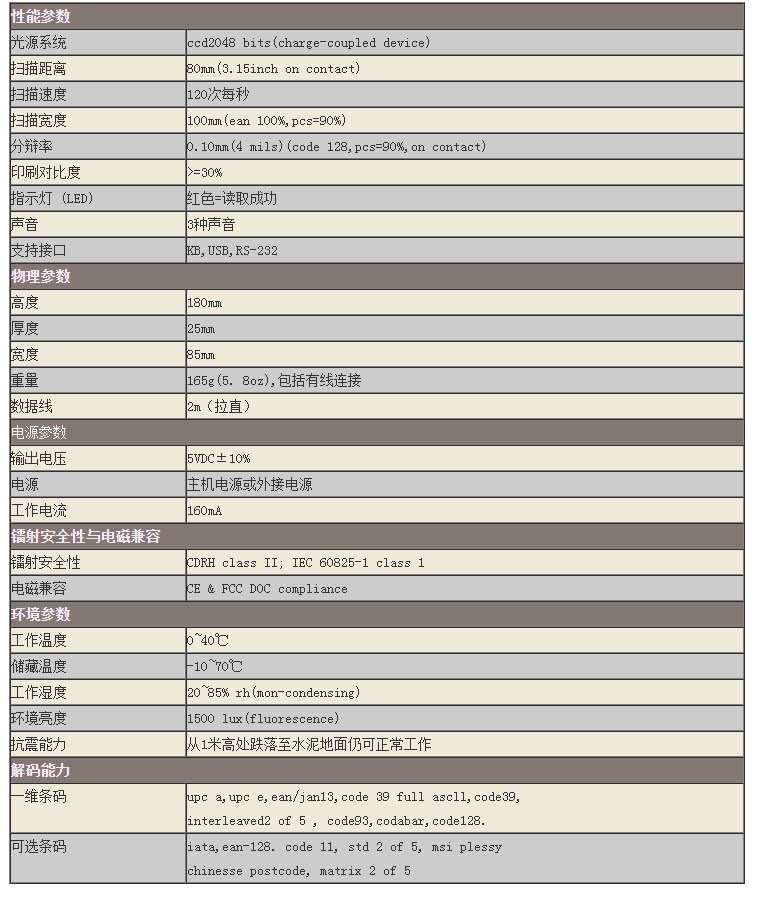 SC-8070S是一款短距CCD扫描器,广泛用于超市、邮政、货仓等场合。
