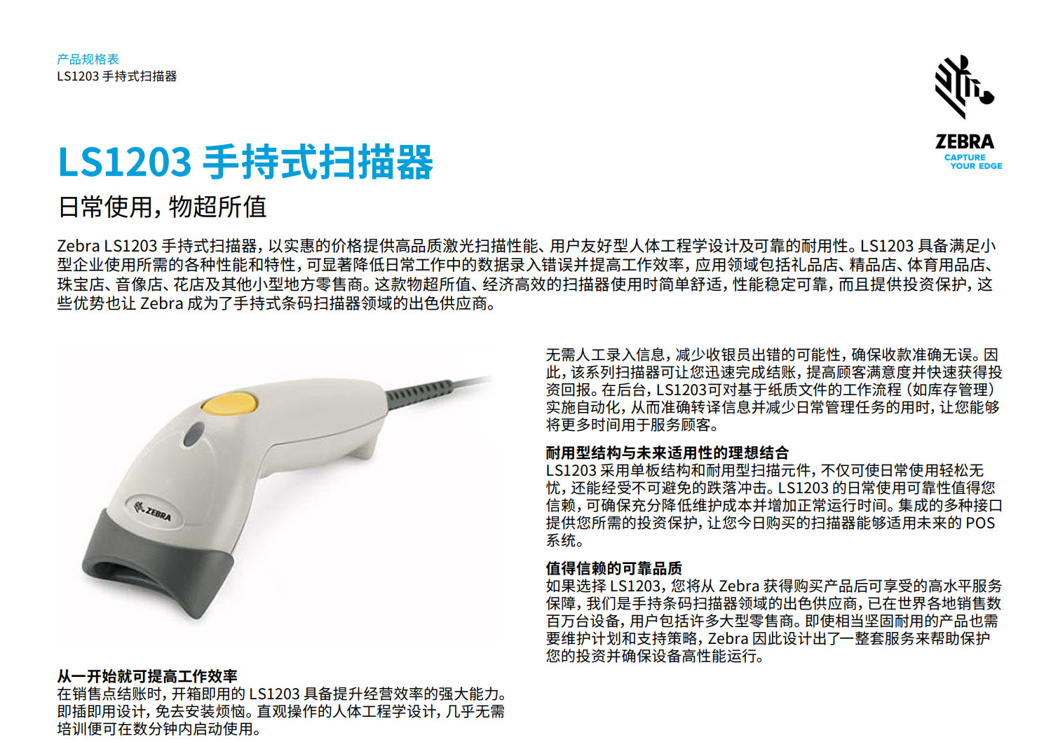 LS1203 手持式扫描器