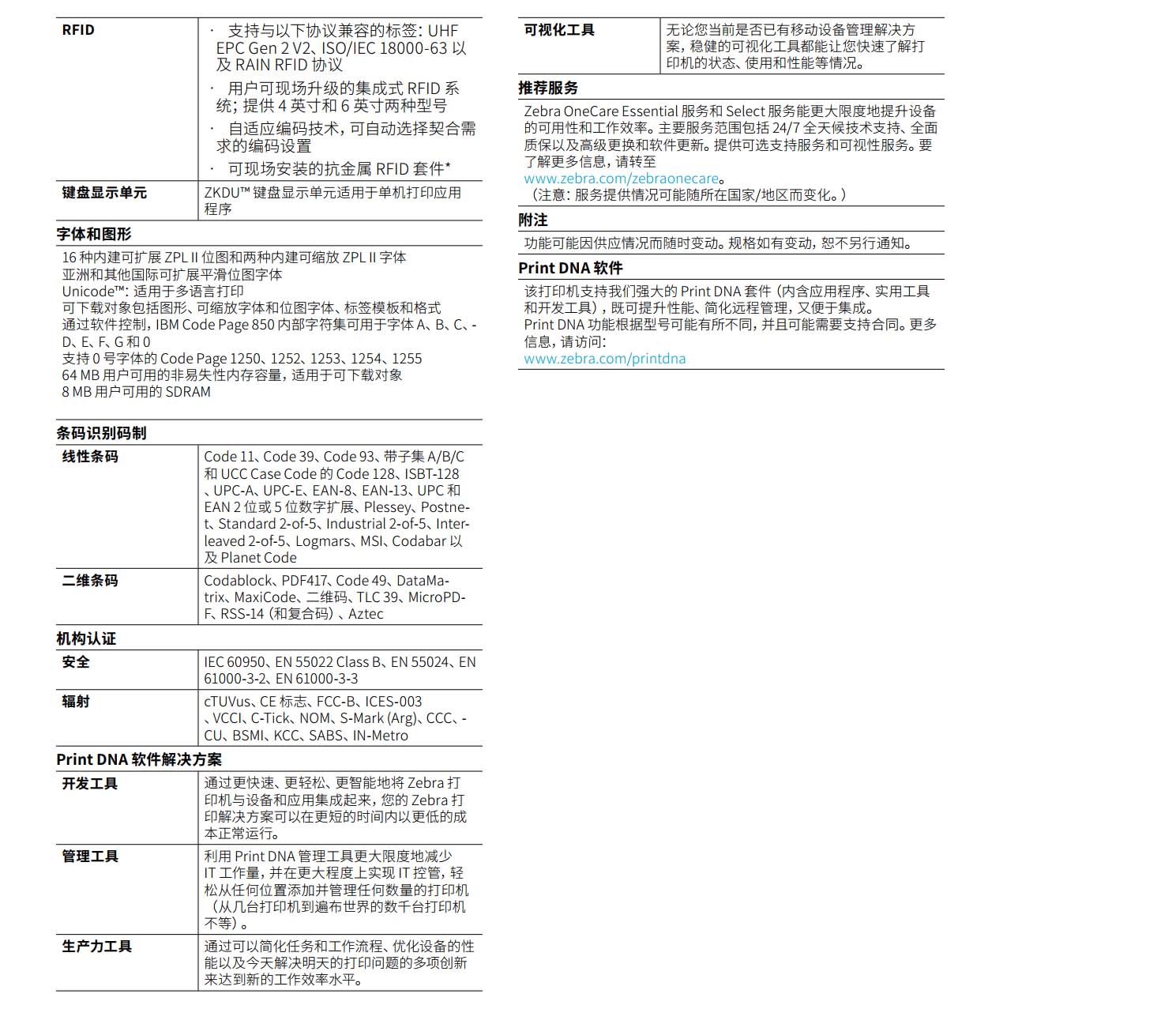 ZT411 带有 4.3 英寸的全彩触摸显示屏,可使打印机状态一目了然;打印宽度可达 4 英尺,打印速度最快可达每秒 14 英寸。可实现高分辨率 (600 dpi) 打印。增加 RFID 功能,可方便对通用型 UHF RFID 标签或厚度更厚的抗金属标签进行打印和编码操作。