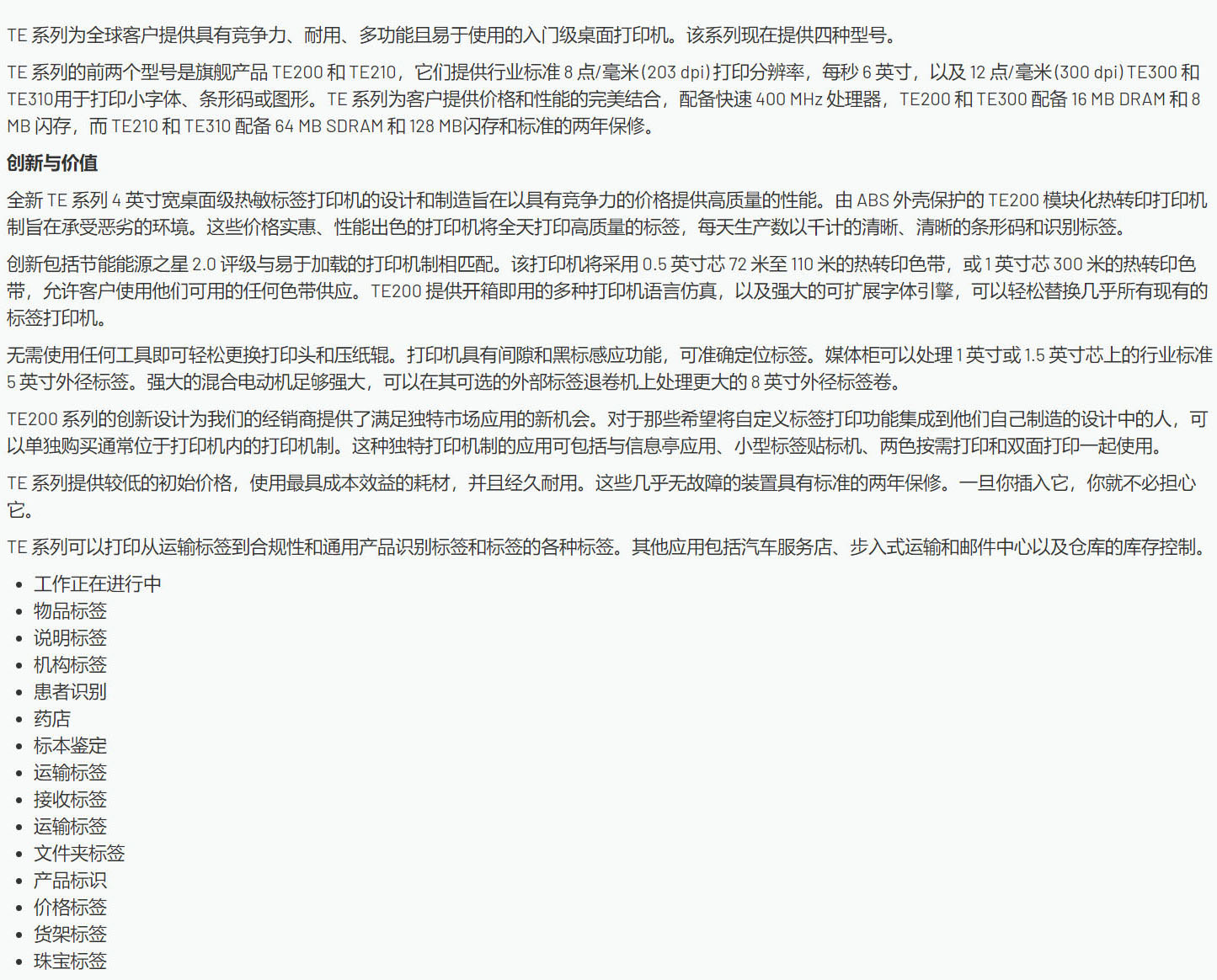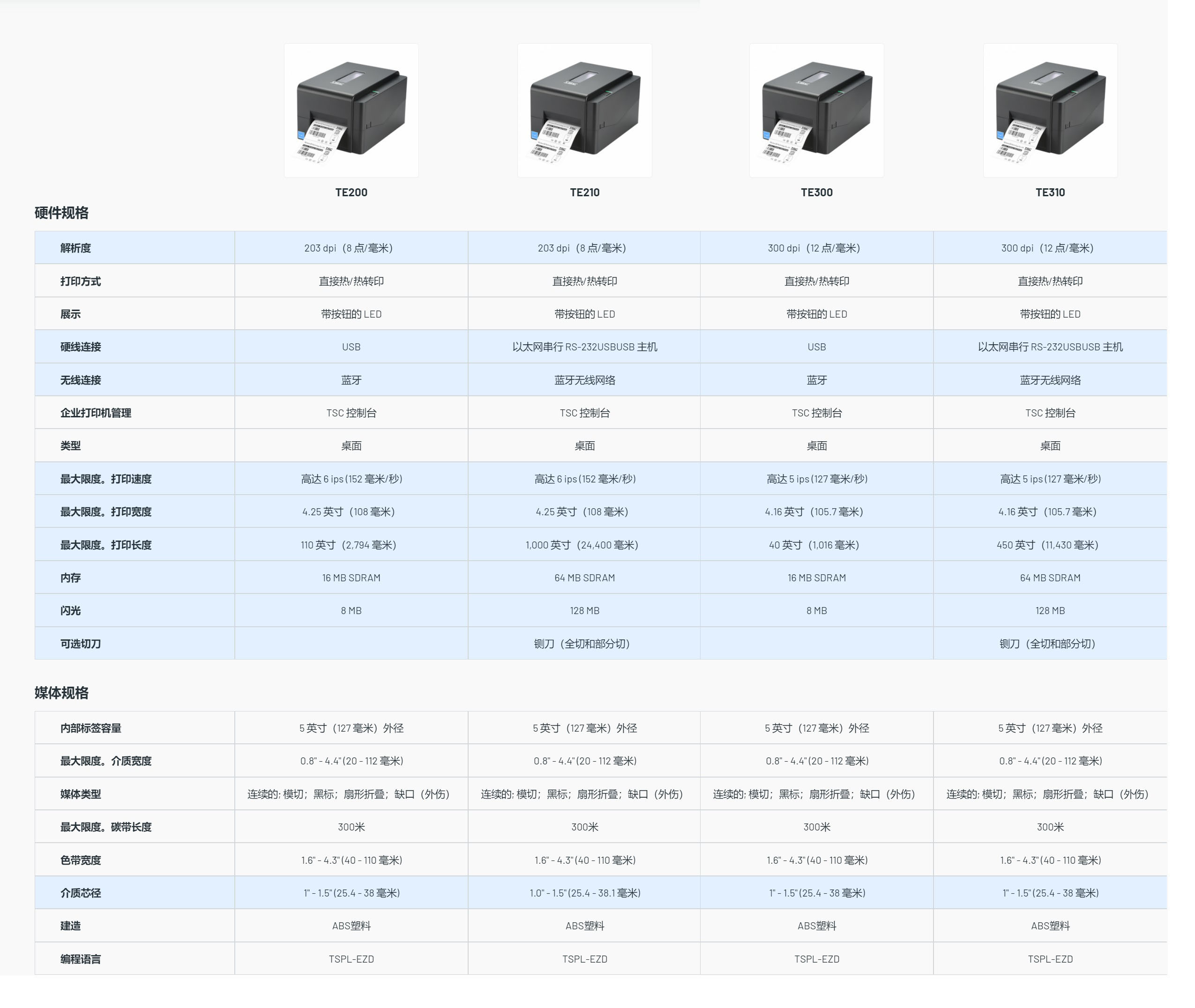 TE200 系列 4英吋 桌上型 热感式/热转式 条形码打印机