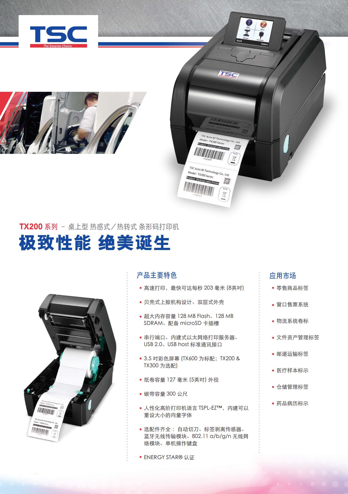 TX200 系列 4英吋 桌上型 热感式/热转式 条形码打印机