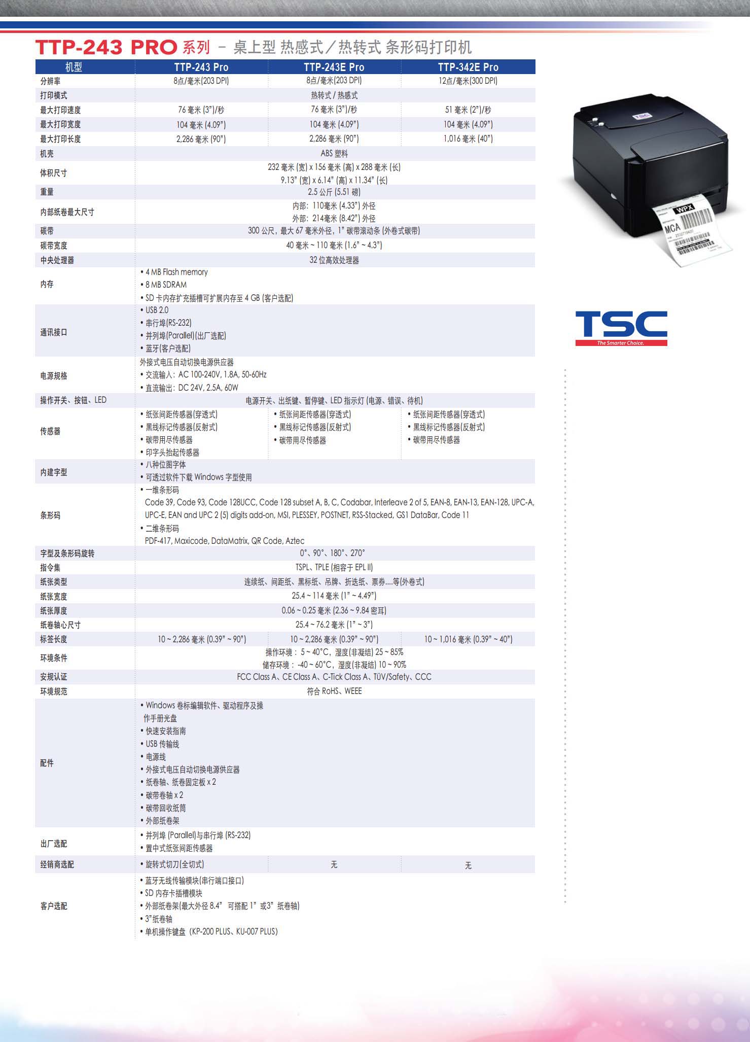 TTP-243 PRO 系列 4英吋桌上型 热感式/热转式 条形码打印机