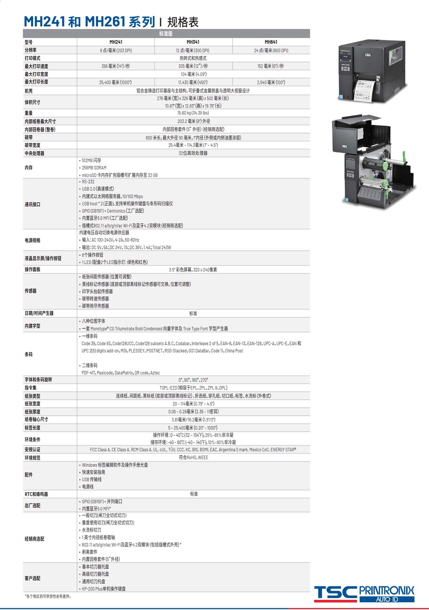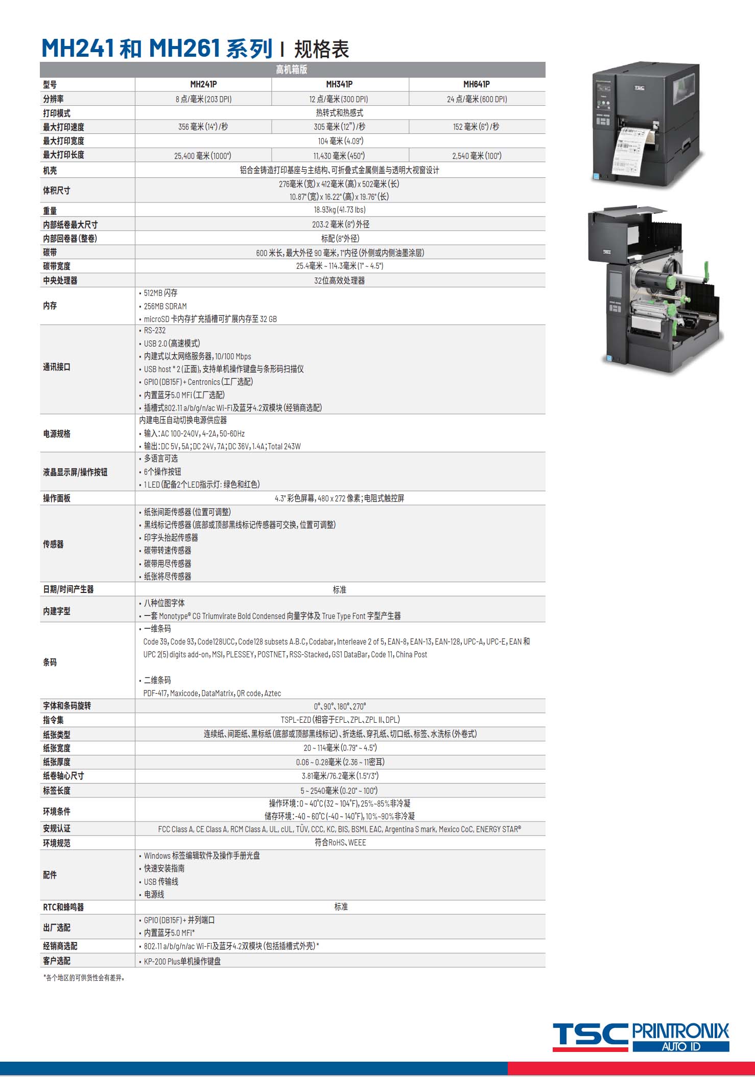 MH241 / MH261 系列 6英吋 工业型 热感式/热转式 条形码打印机