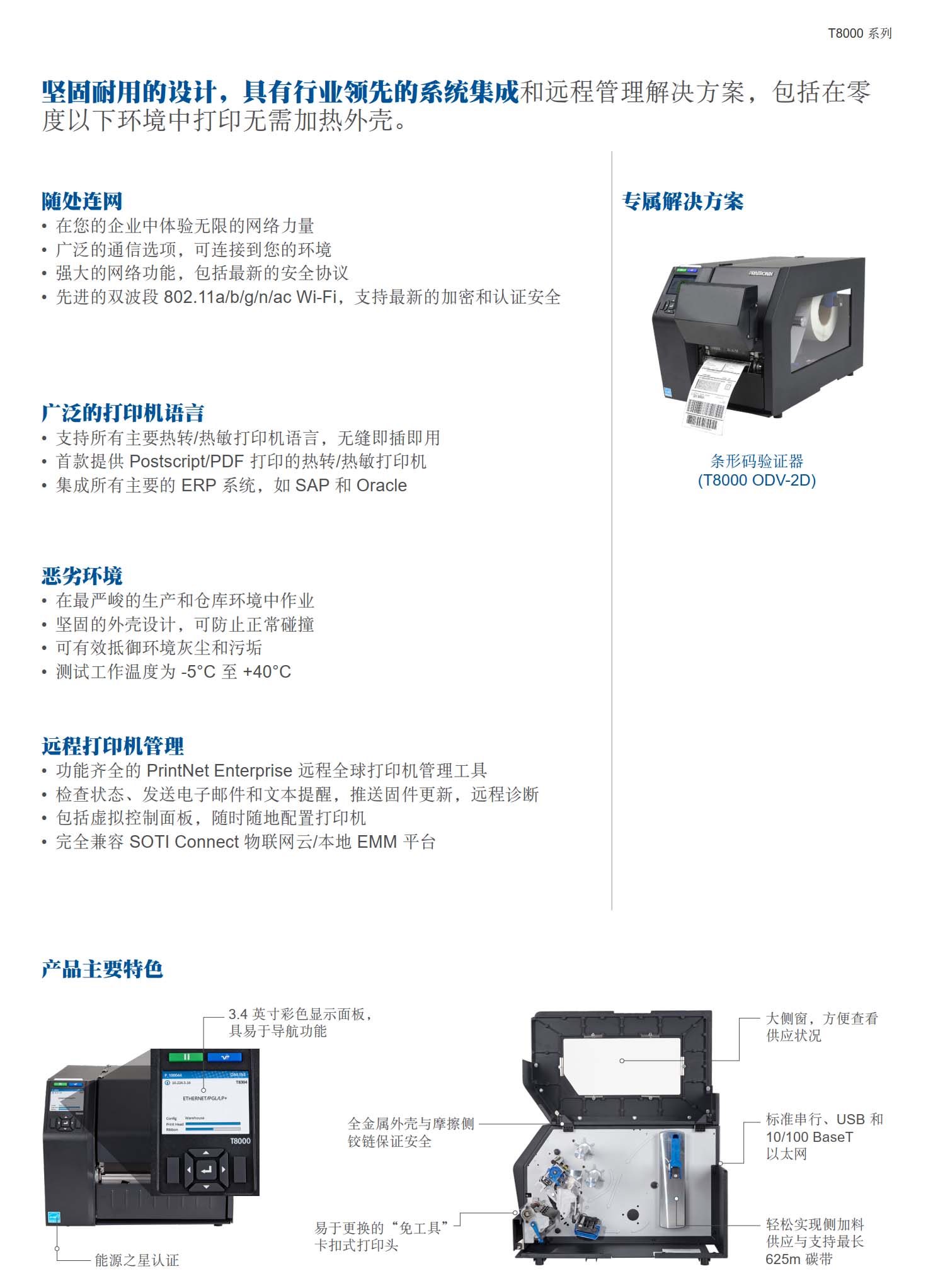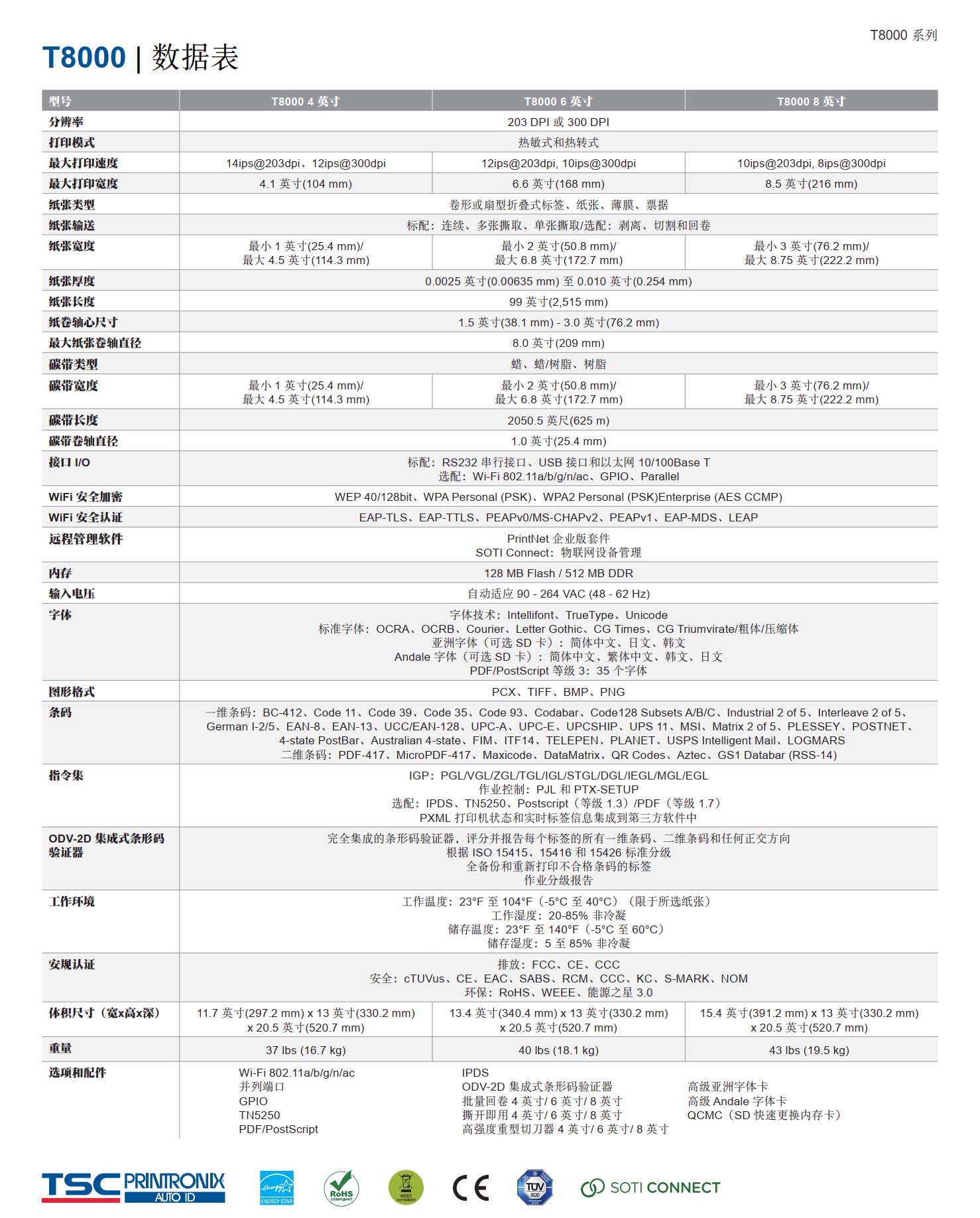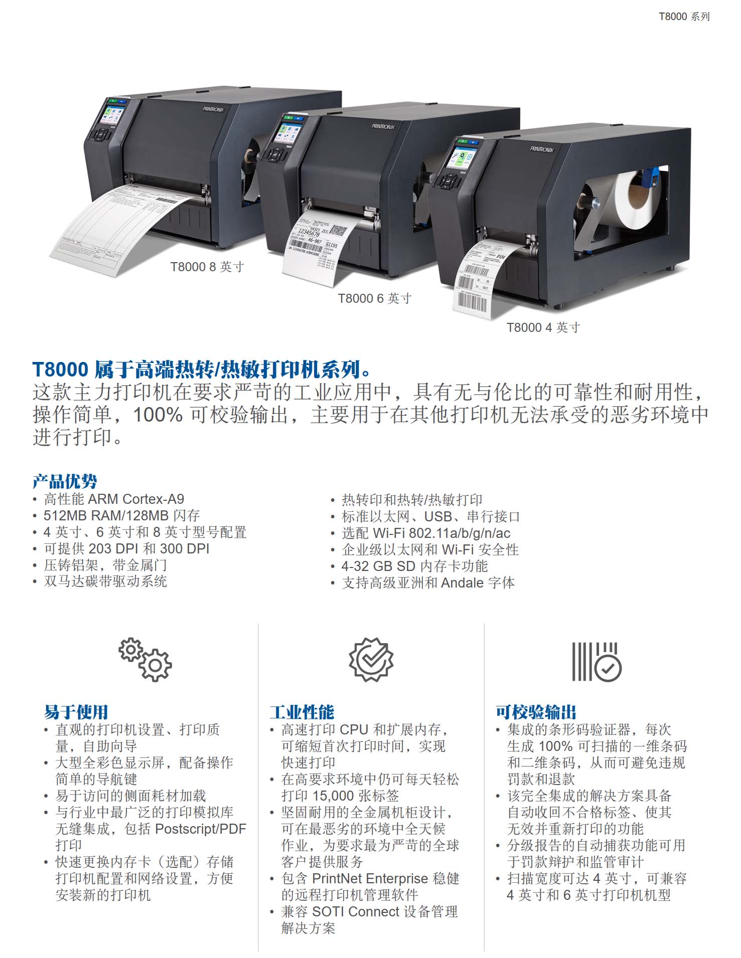 T8000 系列 4英吋 企业级 工业型 热感式/热转式 打印机