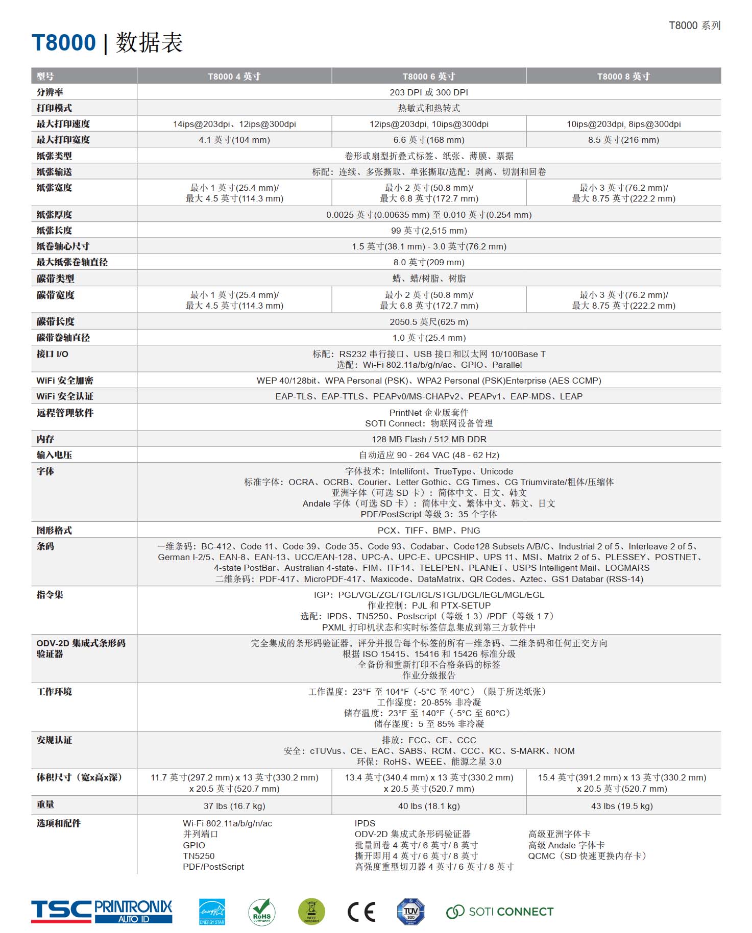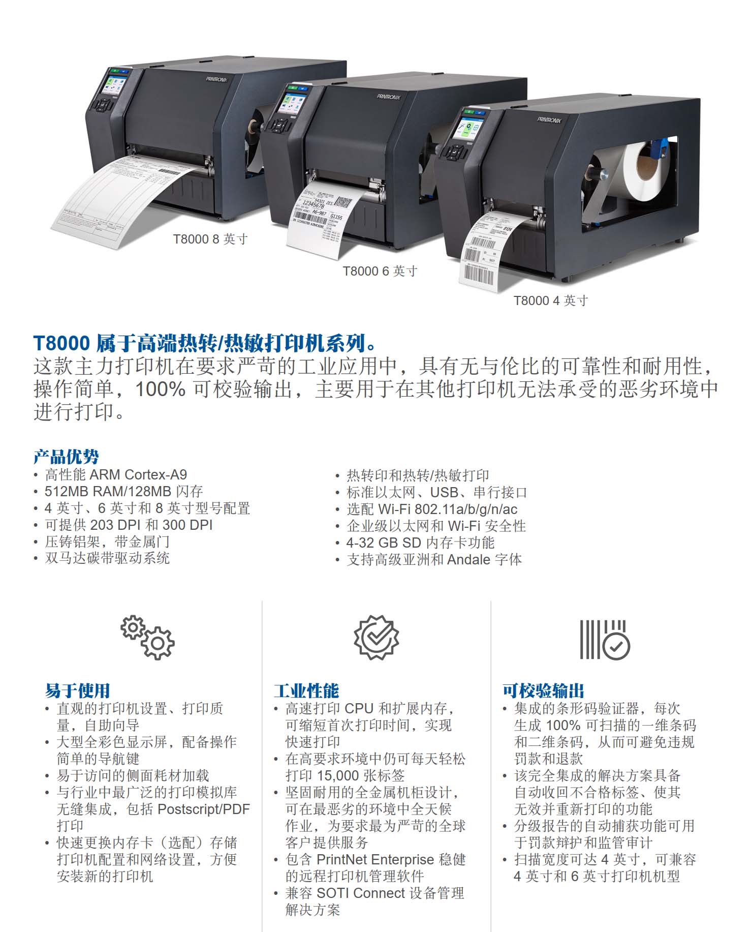 T8000 系列 6英吋 企业级 工业型 热感式/热转式 打印机