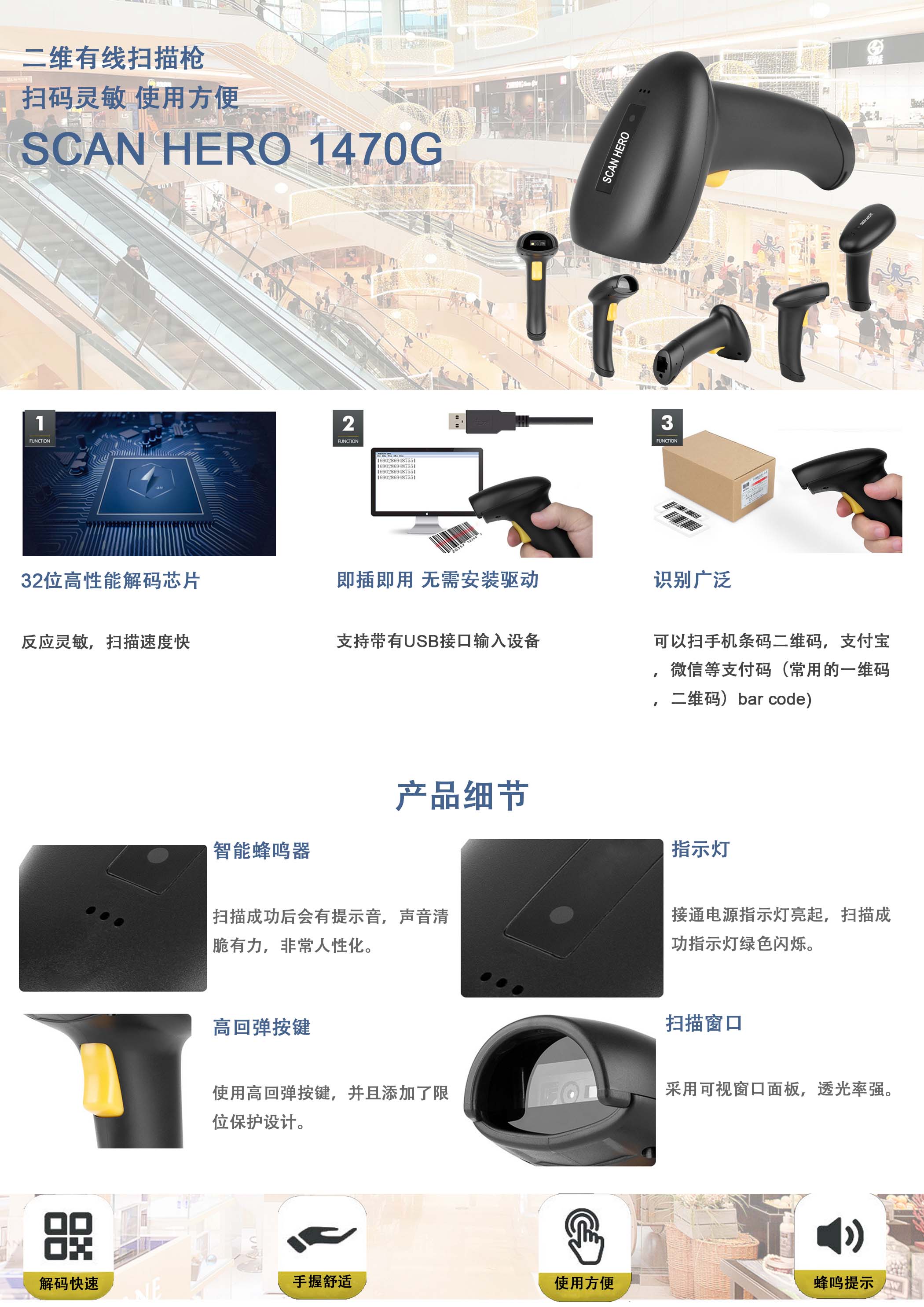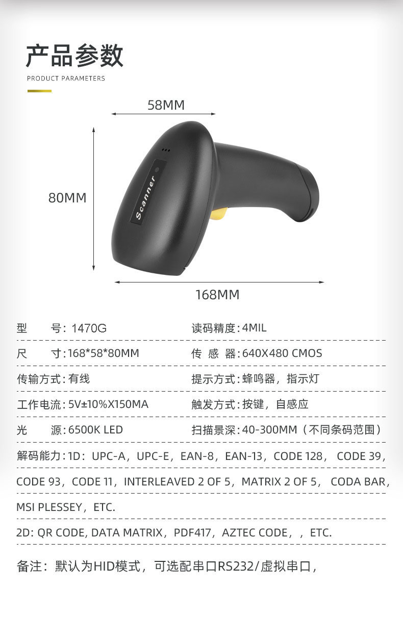 Scanhero 1470G 二维有线扫描枪