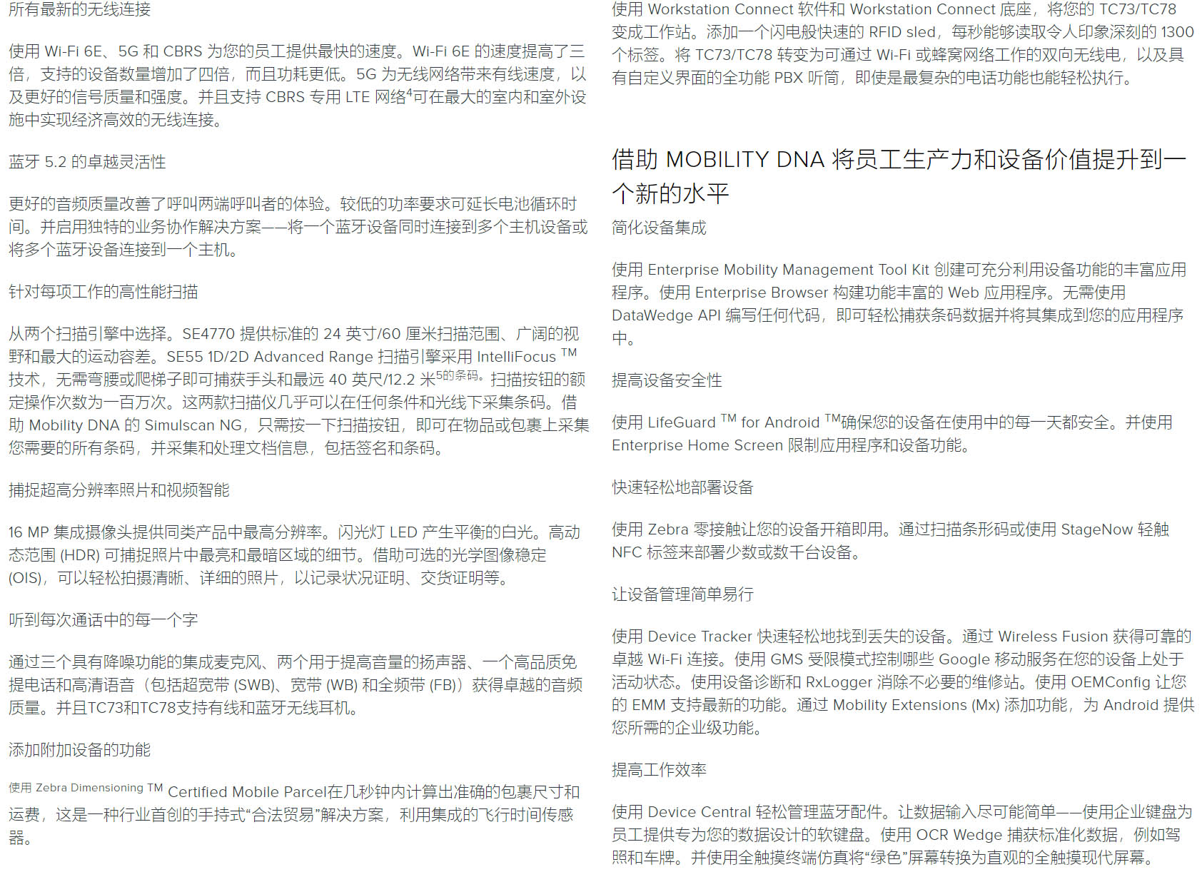 TC73 / TC78 超耐用的触摸式数据终端
