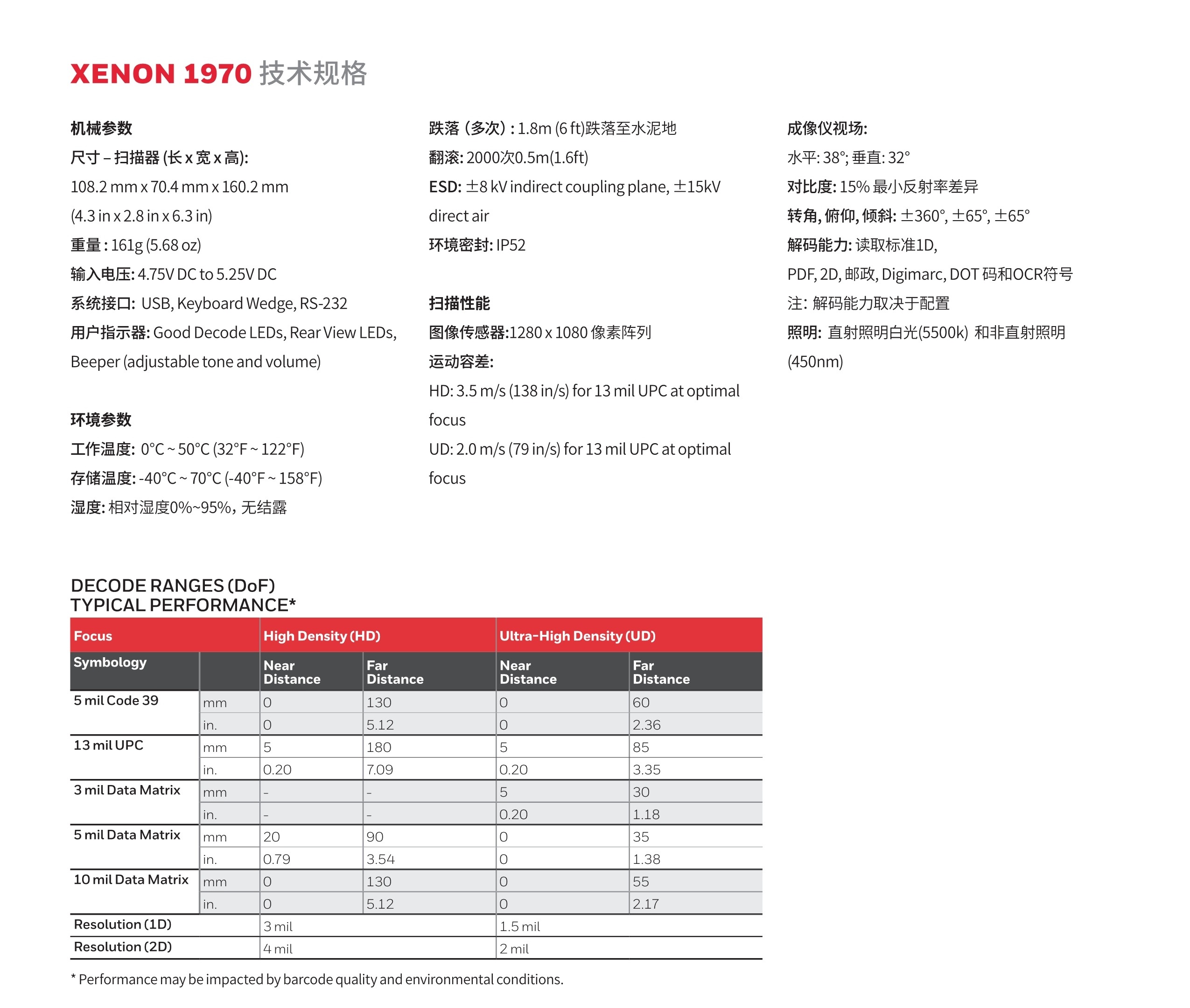 Xenon 1970 有线二维DPM码手持式扫描器