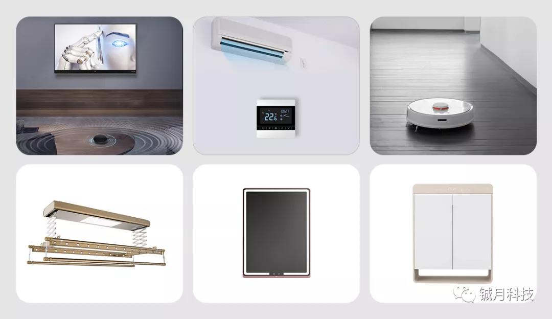 電視控制、空調控制、掃地機器人、晾衣架、智慧魔鏡、智能鞋櫃。生活健康更舒適。