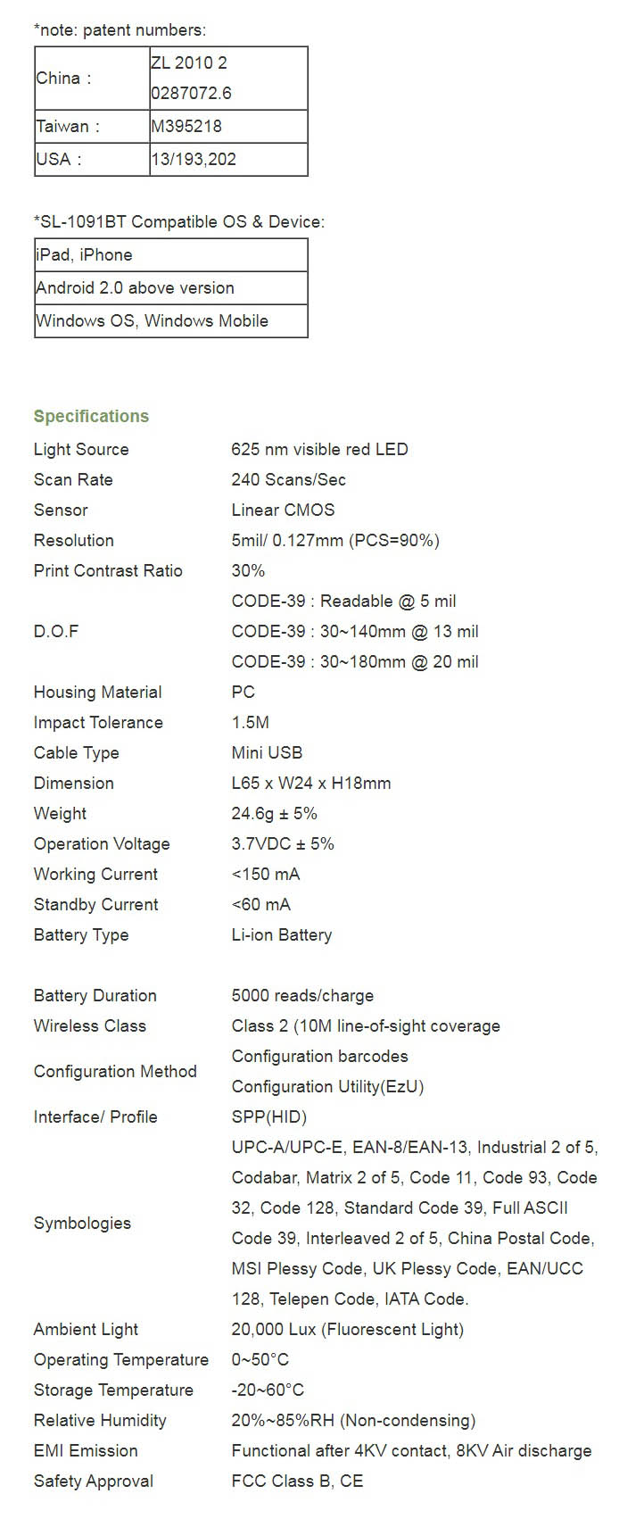 SL-1091BT delivers scan rate of 240 scan per second, allowing users to capture