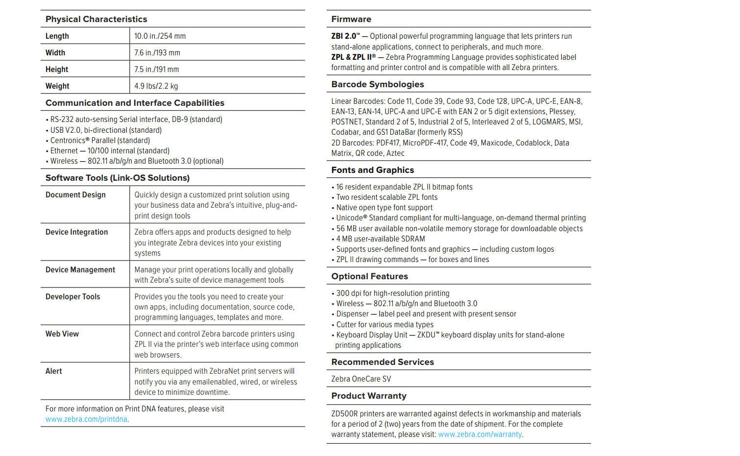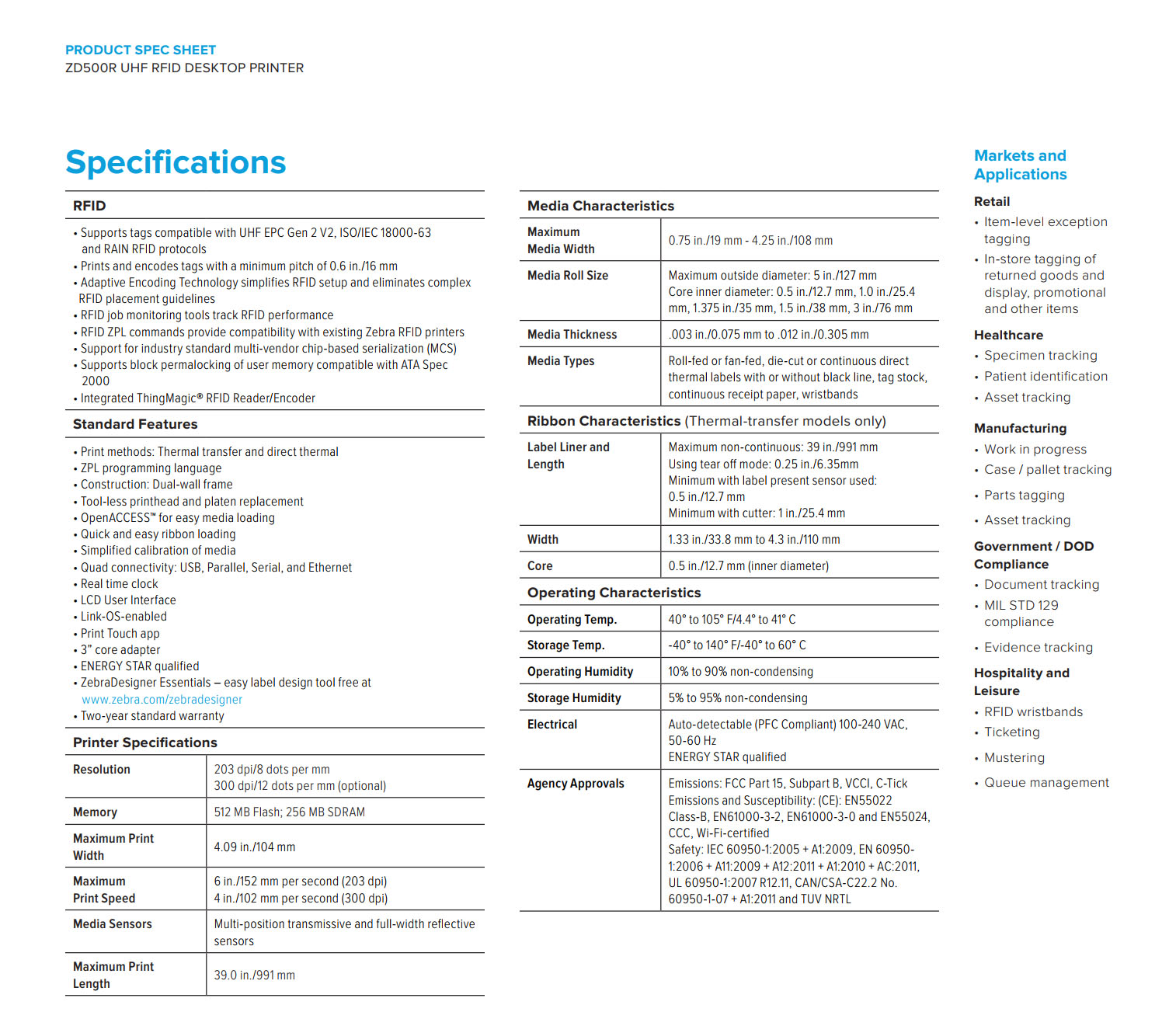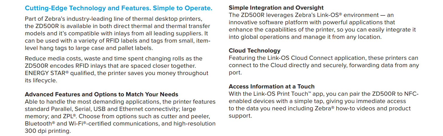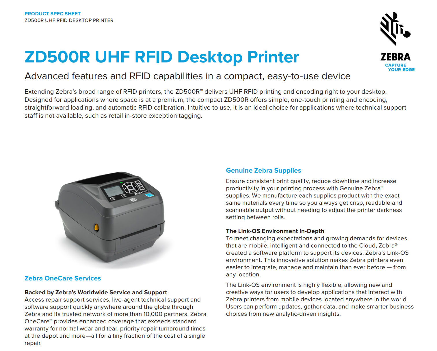 ZD500R 4 Inch Thermal Transfer / Direct Thermal RFID Printer