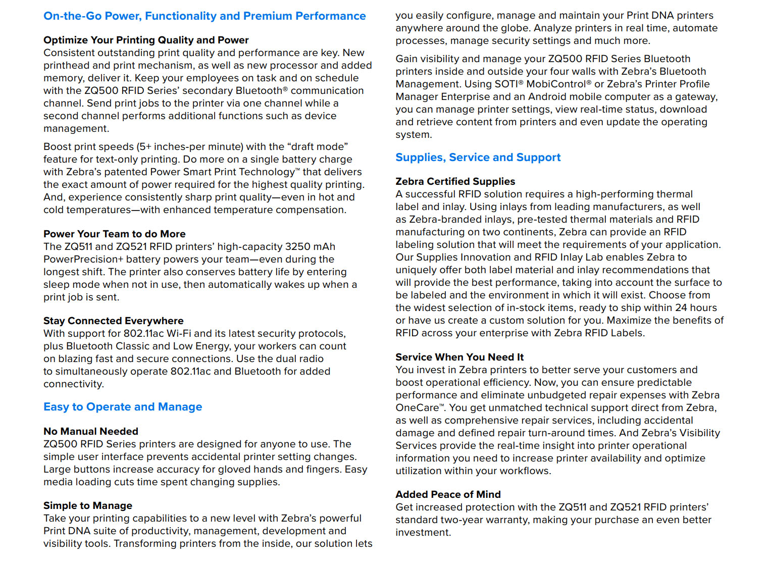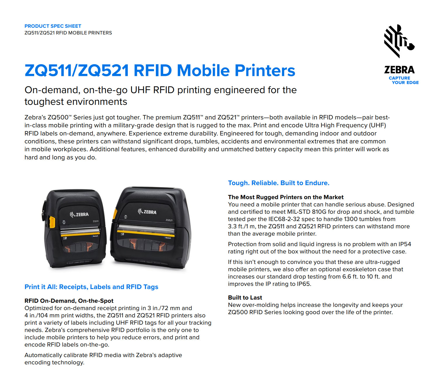 ZQ521 4 Inch RFID Mobile Printer