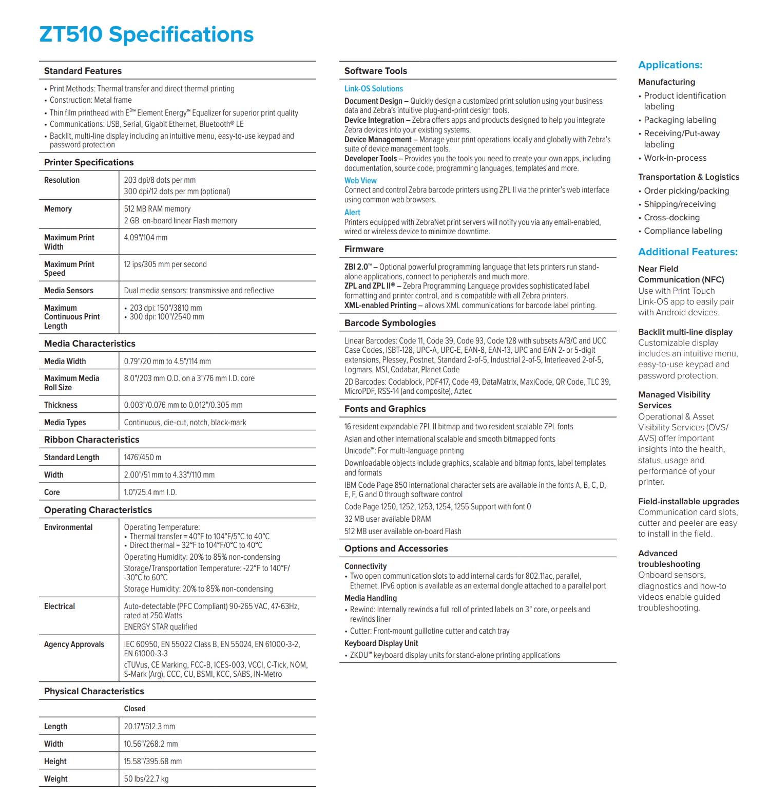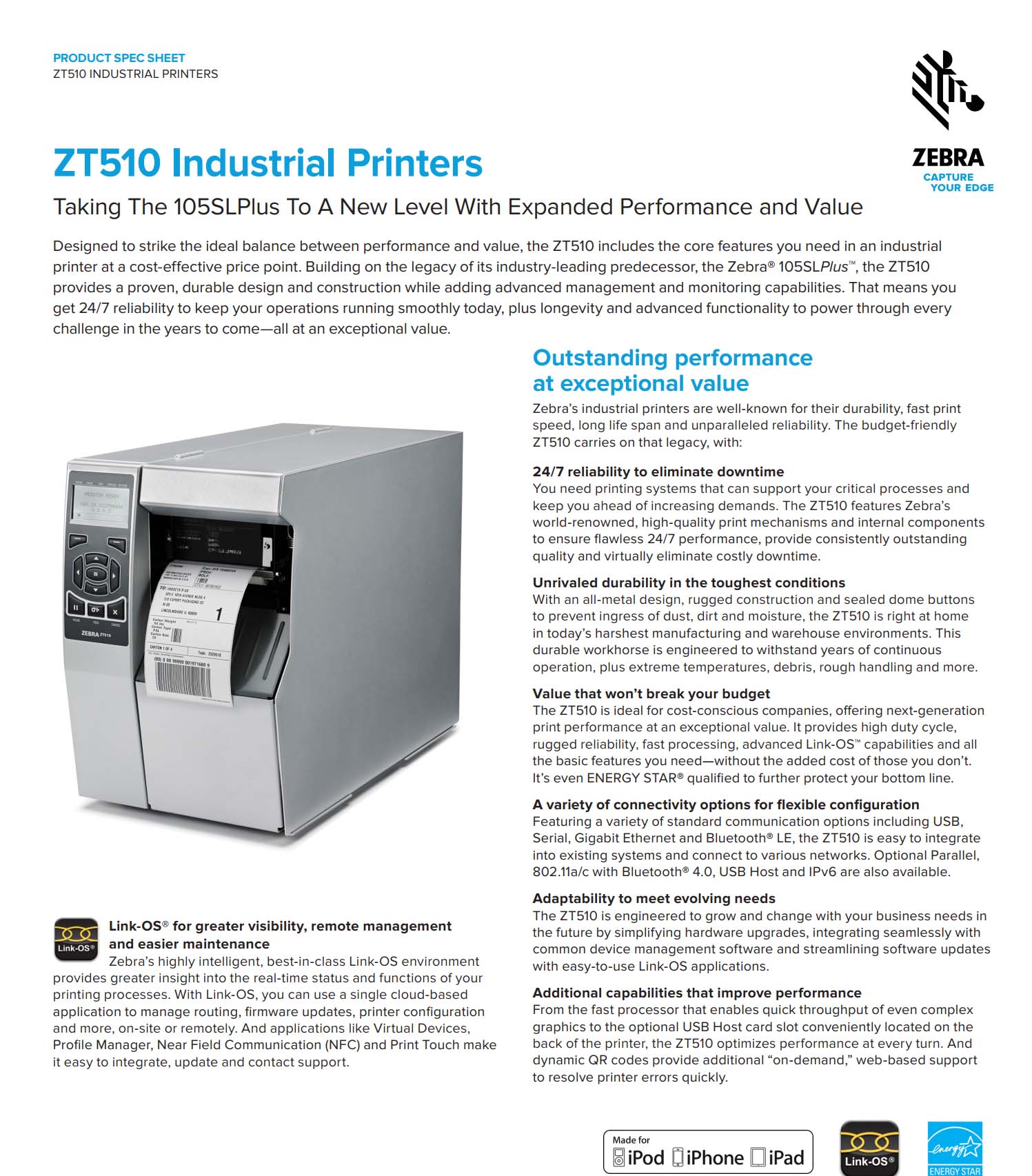 ZT510 4 Inch Thermal Transfer / Direct Thermal Industrial Printer