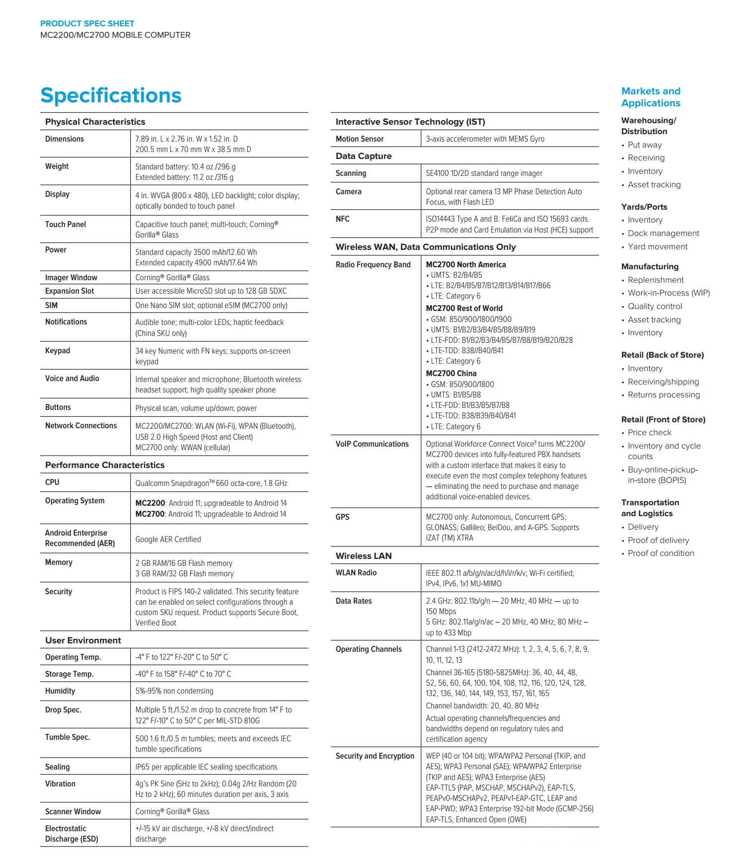 With LTE support, the MC2700 delivers the fastest cellular data connections. Whether workers are loading and unloading containers on ships in a port, managing inventory outside in a multi-acre yard, capturing proof of delivery and condition for package delivery, repairing equipment or making sales calls, they always have access to the information they need to maximize efficiency and task accuracy.