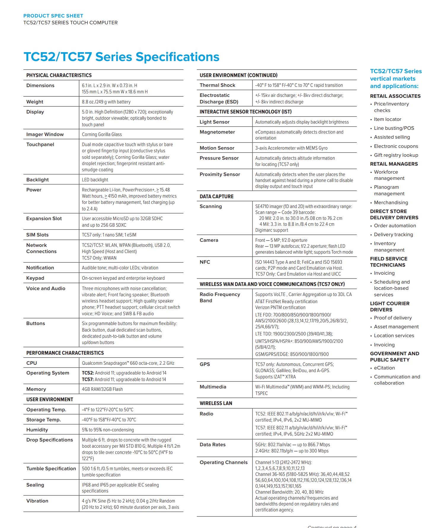 The rugged TC57 Android Mobile Computer builds on the highly successful TC56, adding a new platform and new capabilities to deliver the ultimate in enterprise-class touch computing outside the four walls. Your workers get all the features they need to maximize productivity, improve staff enablement and deliver the ultimate in customer service. Complete cellular network flexibility provides the fastest connections for workers all around the world. And device management is easier than ever.