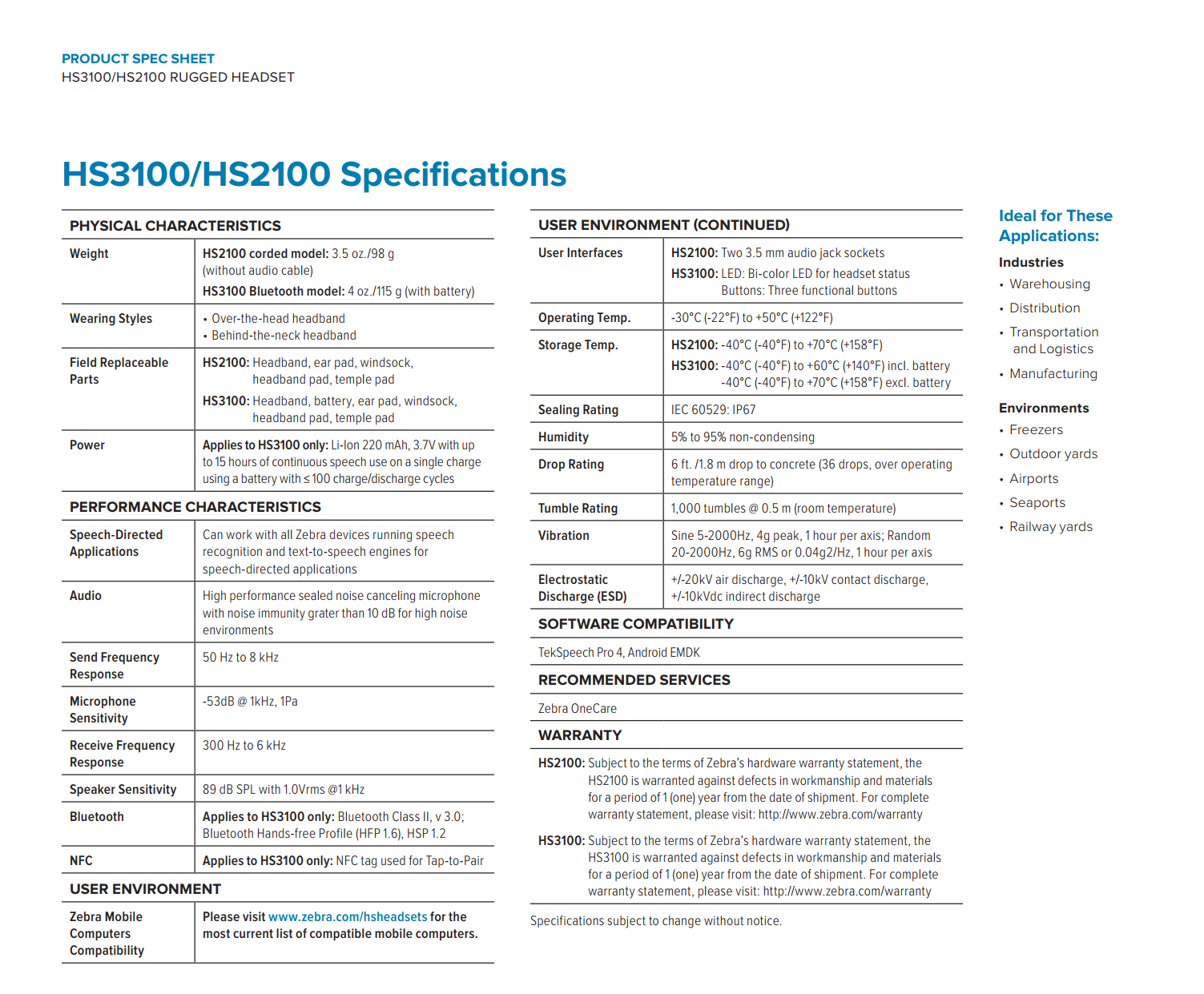 With a rugged and modular design, HD Voice for unparalleled audio clarity, consumer styling, feather-light for extraordinary comfort and our robust speech recognition engine, Zebra’s HS2100 corded headset gives your workers a superior voice experience in the most demanding industrial environments.