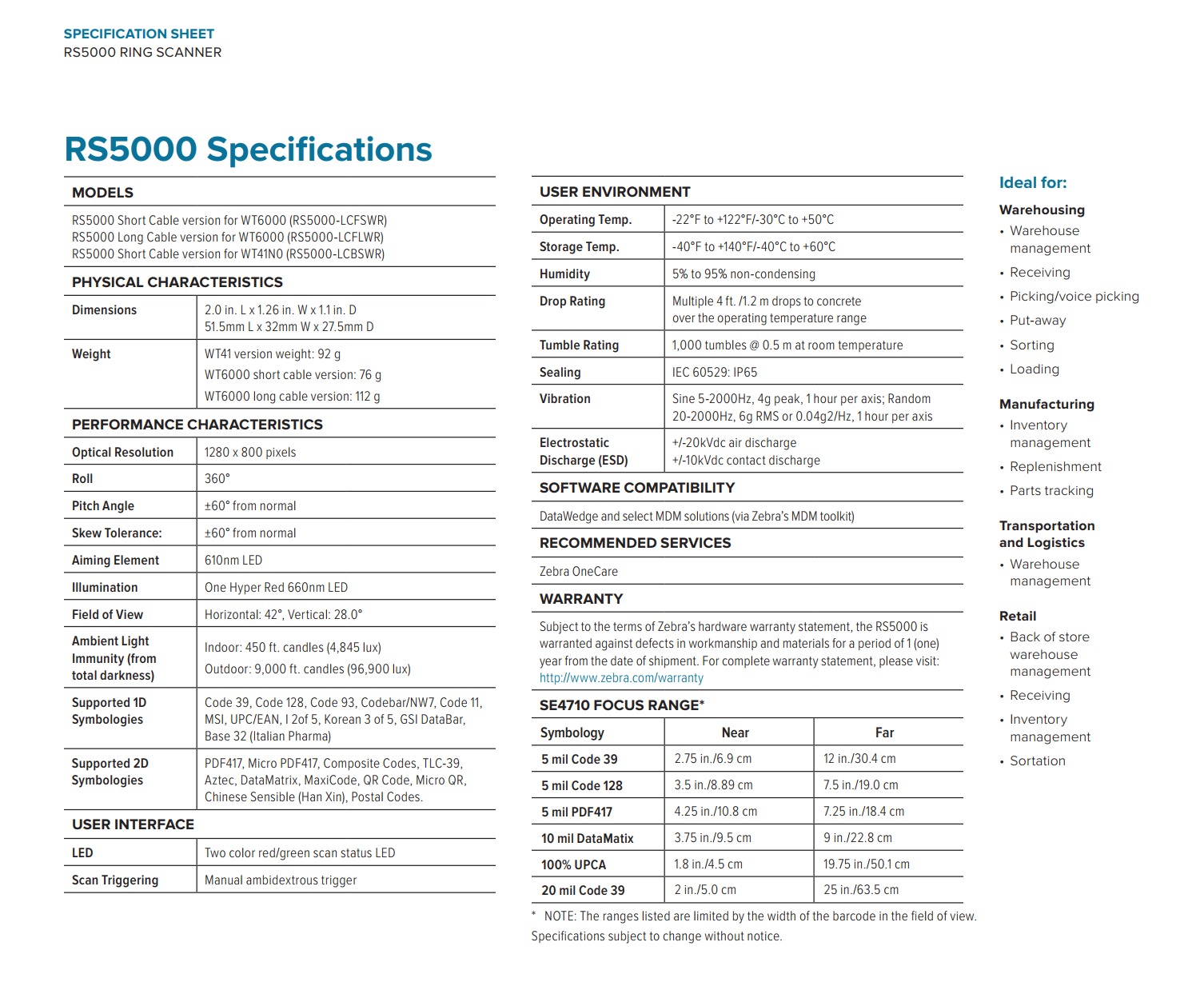 RS5100 Bluetooth Wearable Scanner