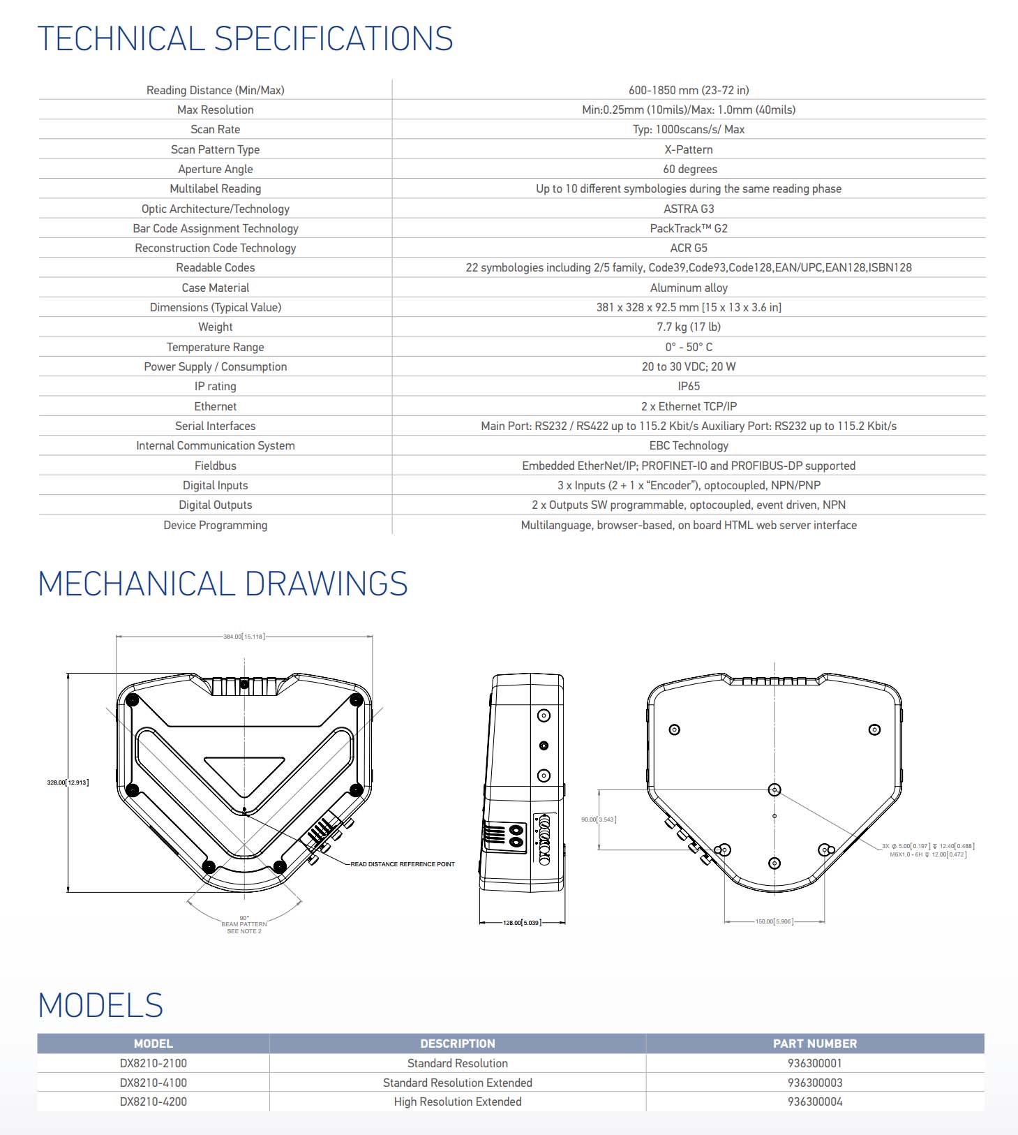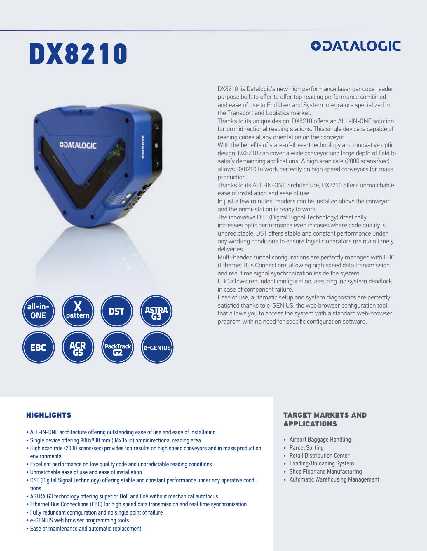 DX8210 High performance laser bar code reader