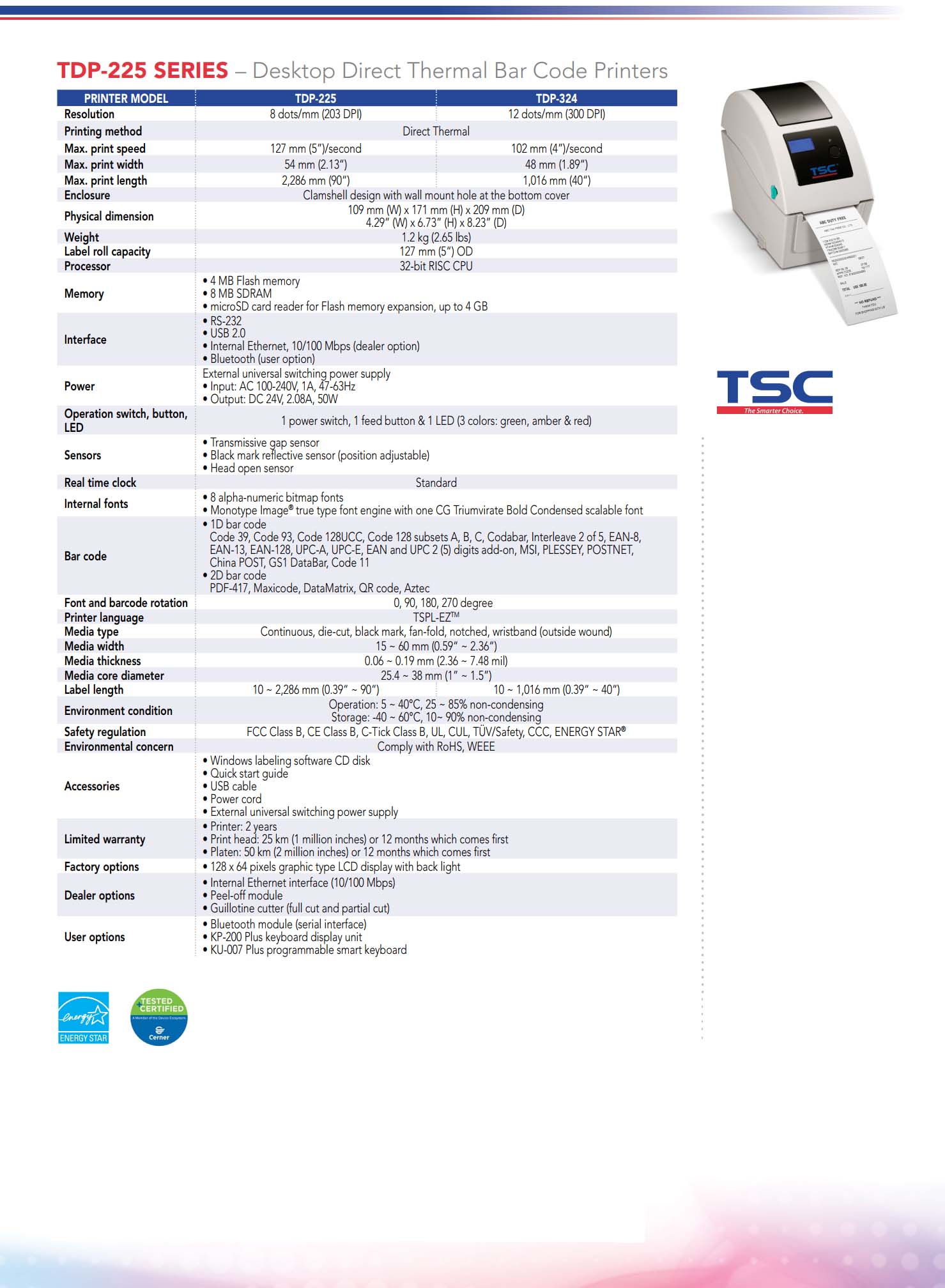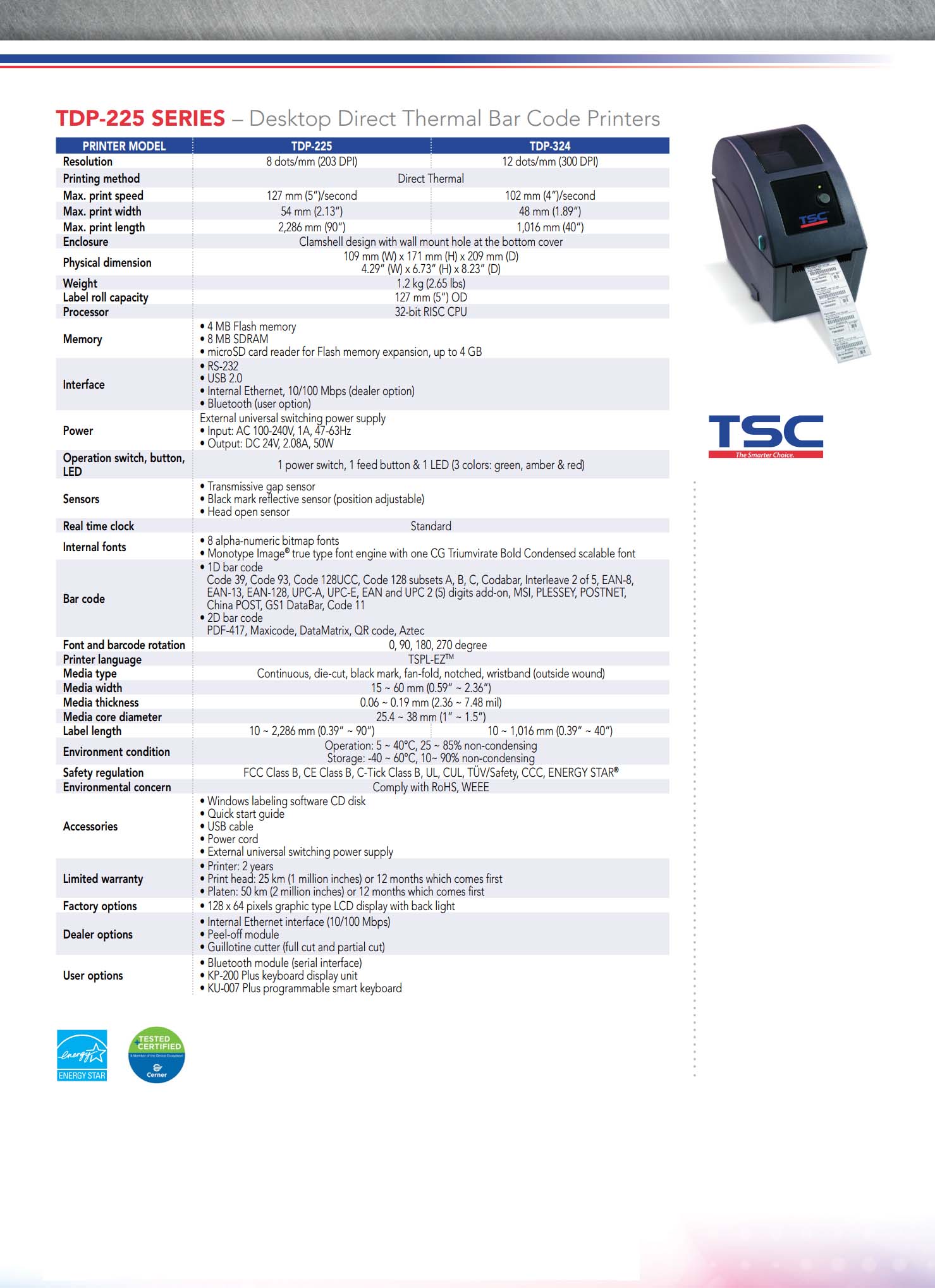TDP Series 2-Inch Desktop Direct Thermal Barcode Printers