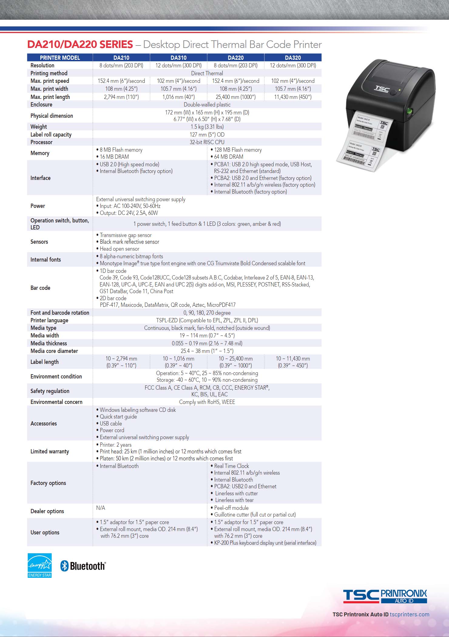 DA210 / DA220 Series 4-Inch Desktop Direct Thermal Barcode Printers