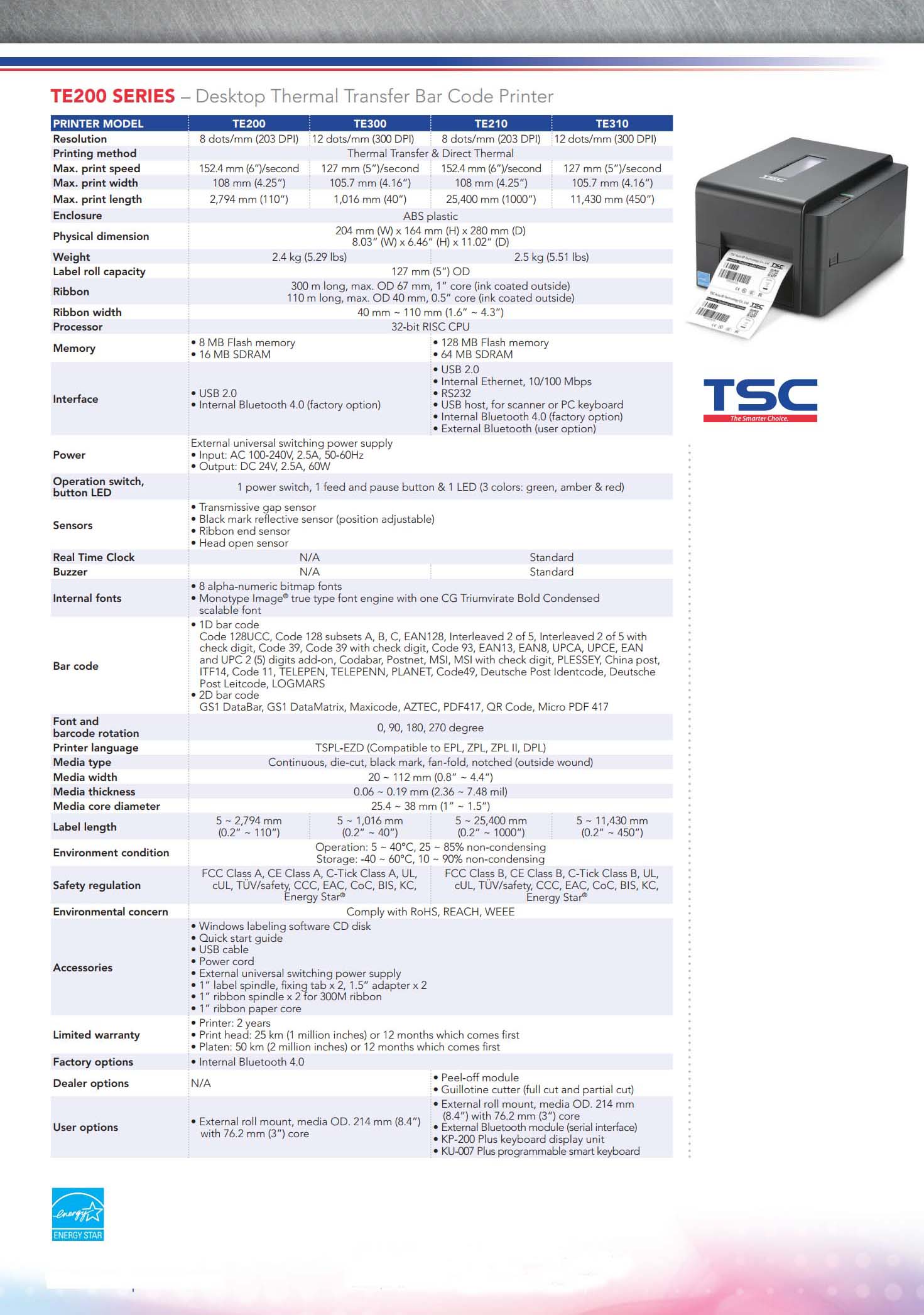 TE200 Series 4 Inch Desktop Thermal Transfer & Direct Bar Code Printer