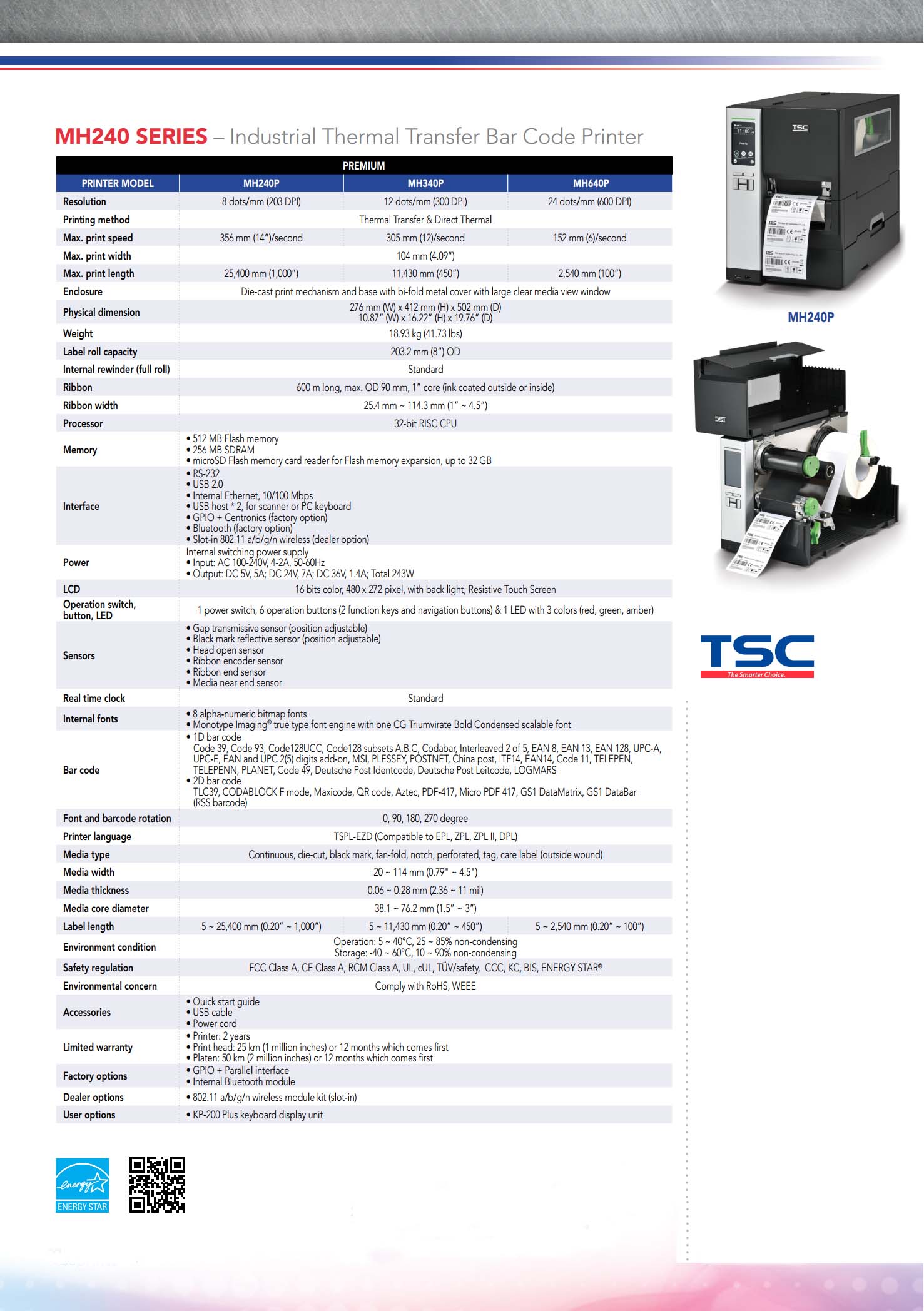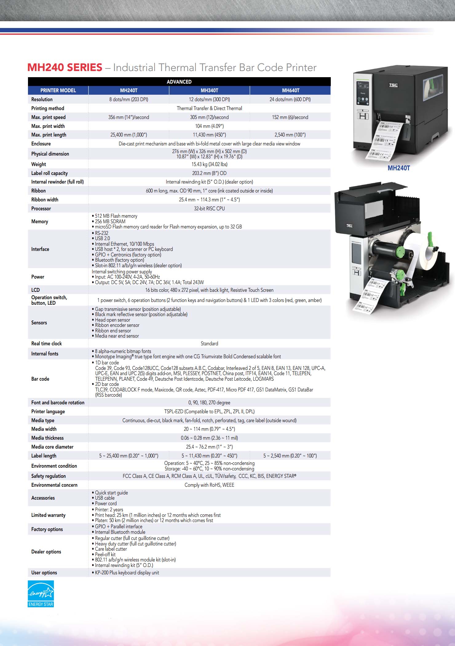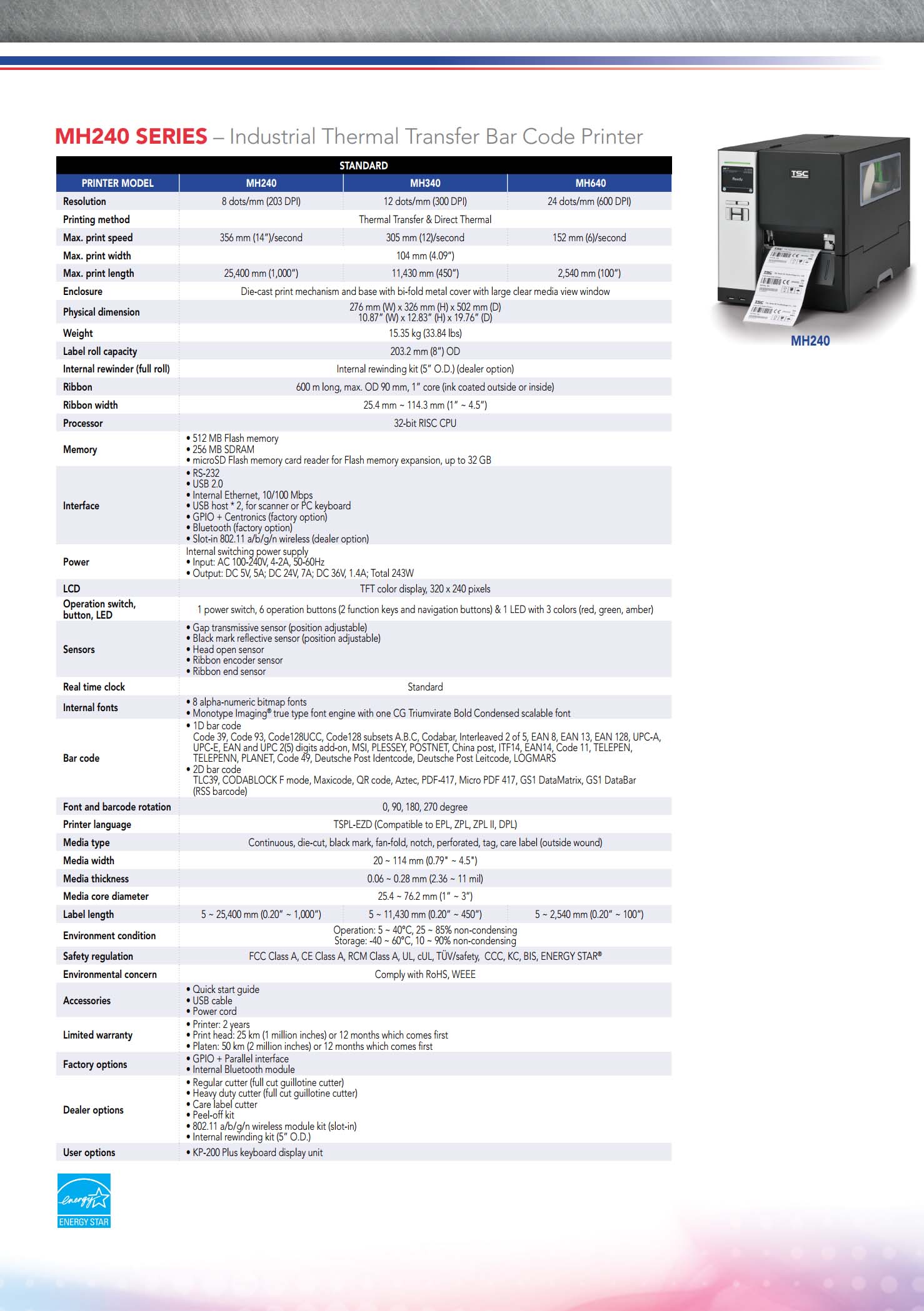MH240 Series 4 Inch Industrial Thermal Transfer & Direct Thermal Bar Code Printer