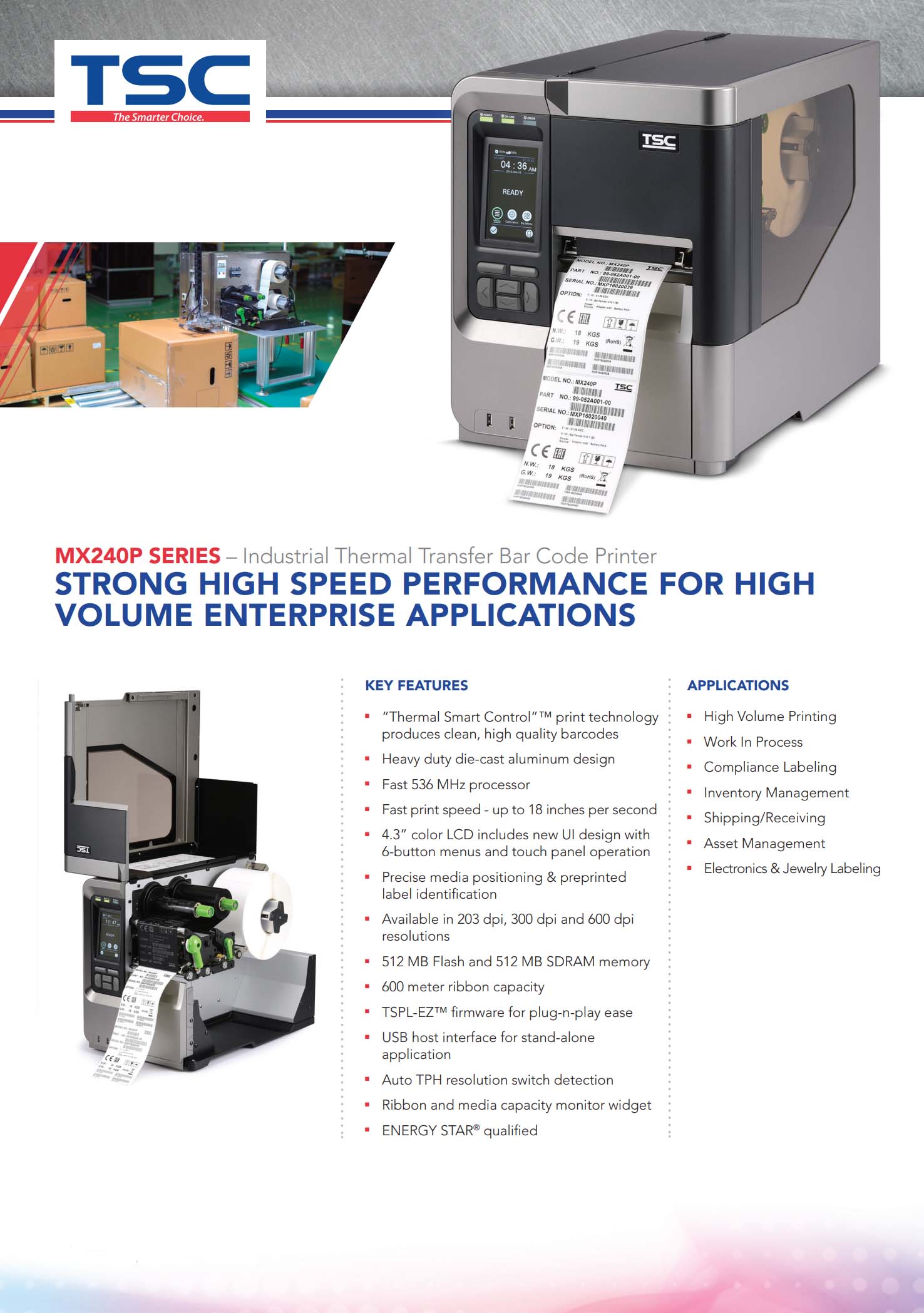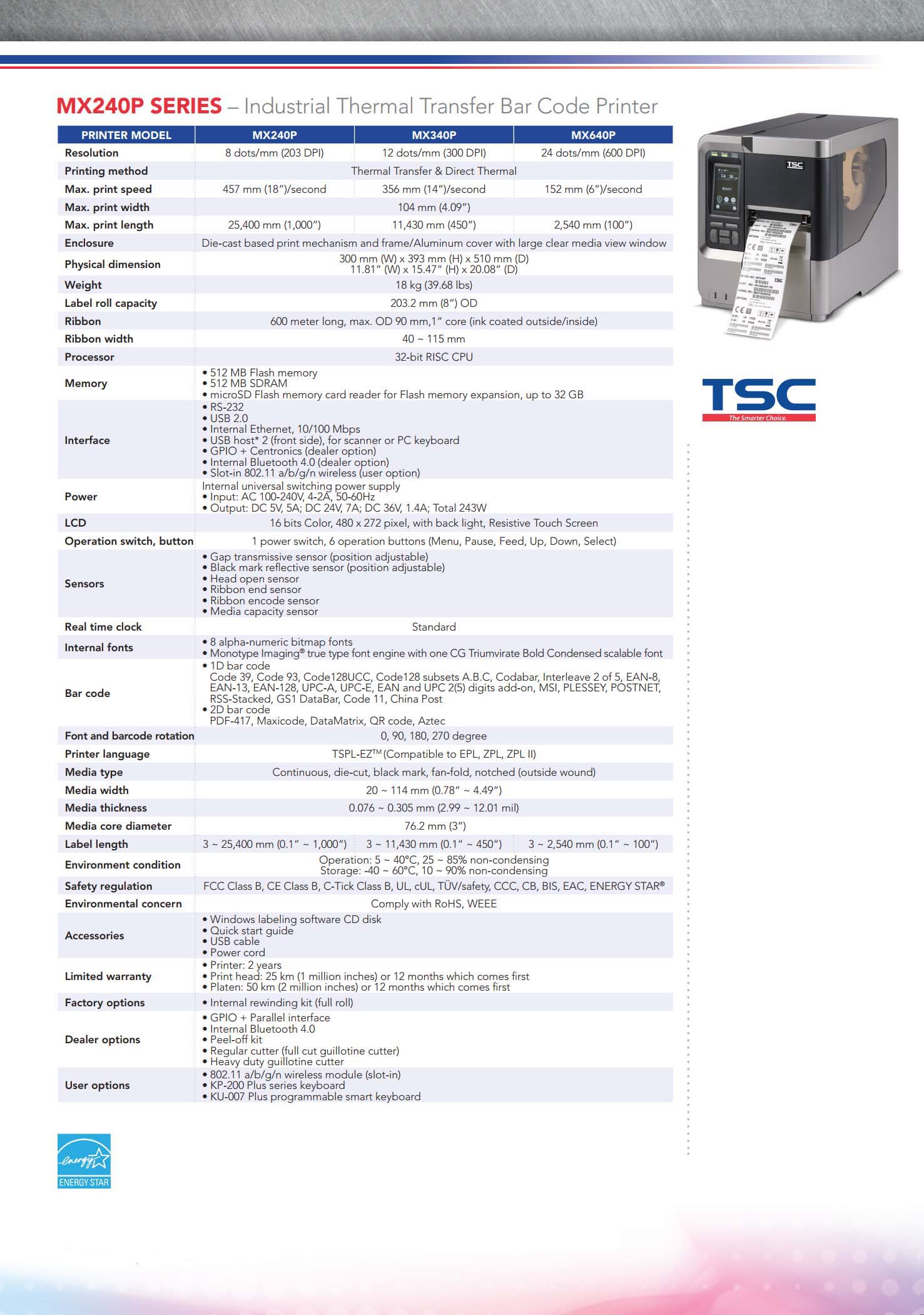 MX240P Series 4 Inch Industrial Thermal Transfer & Direct Thermal Bar Code Printer