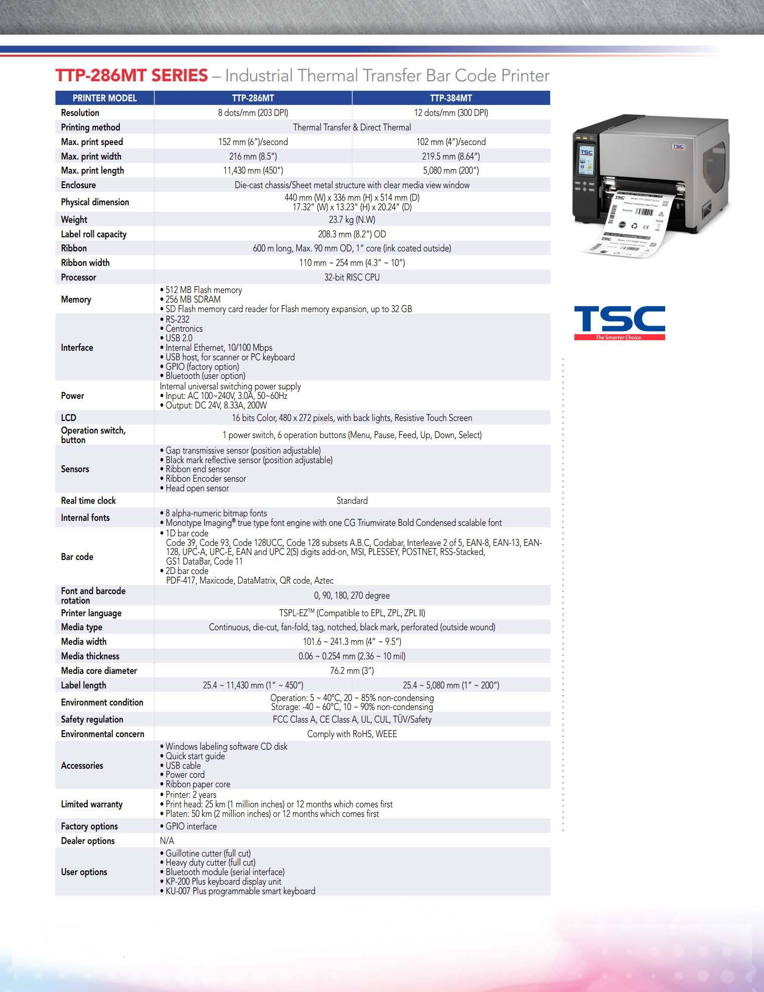 TTP-286MT Series 8 Inch Industrial Thermal Transfer & Direct Thermal Bar Code Printer