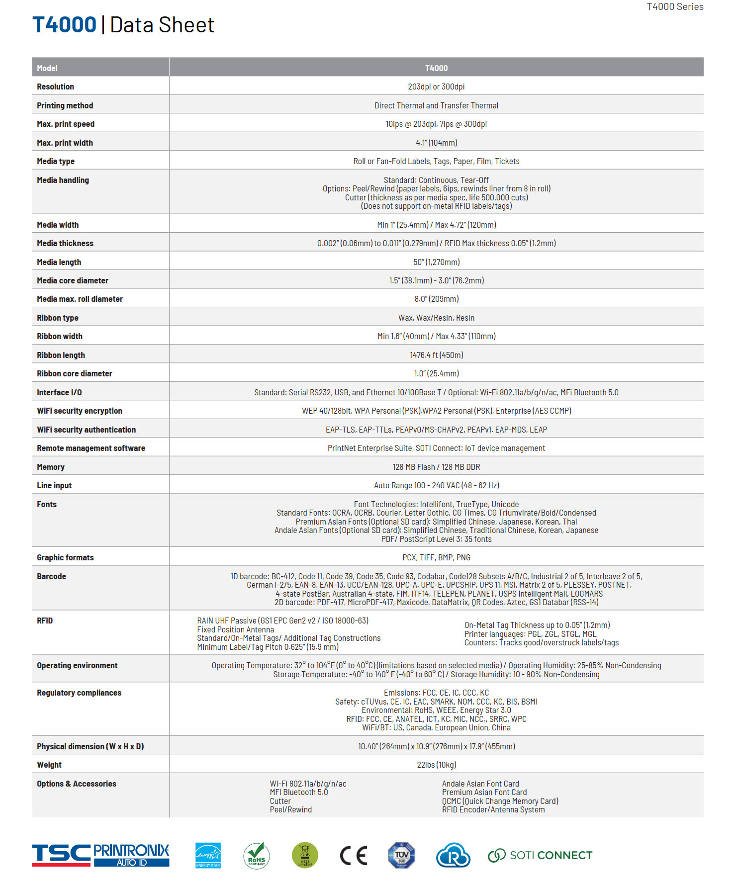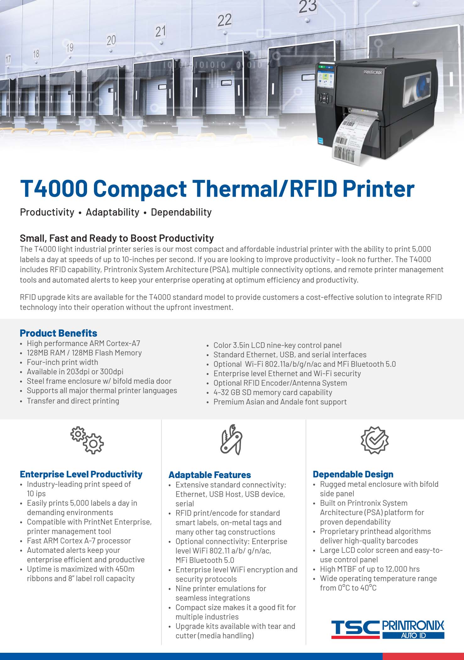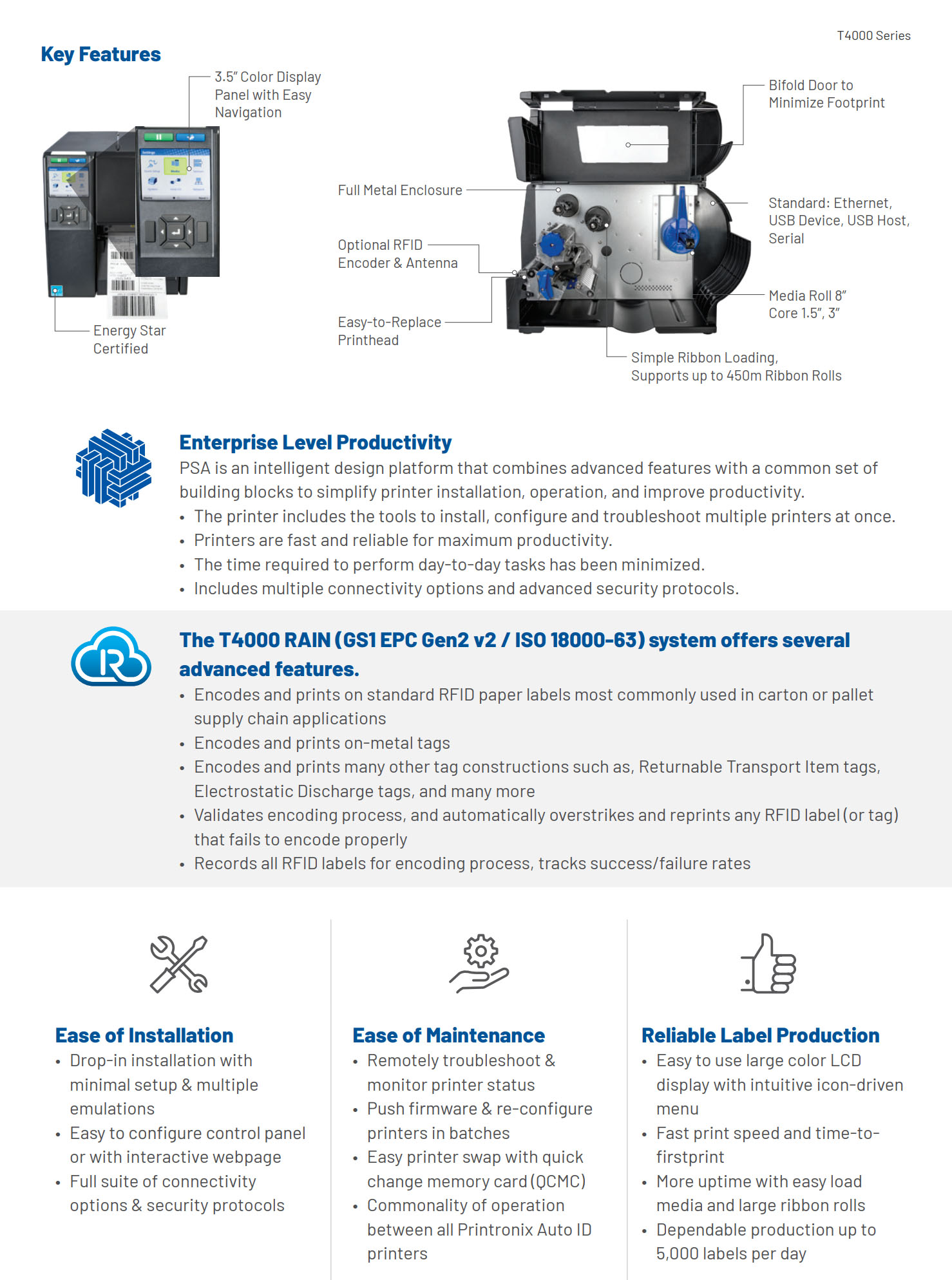 T4000 Series 4 Inch Enterprise Industrial Thermal Transfer & Direct Thermal RFID Printer