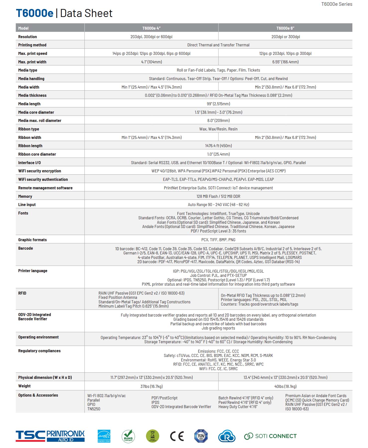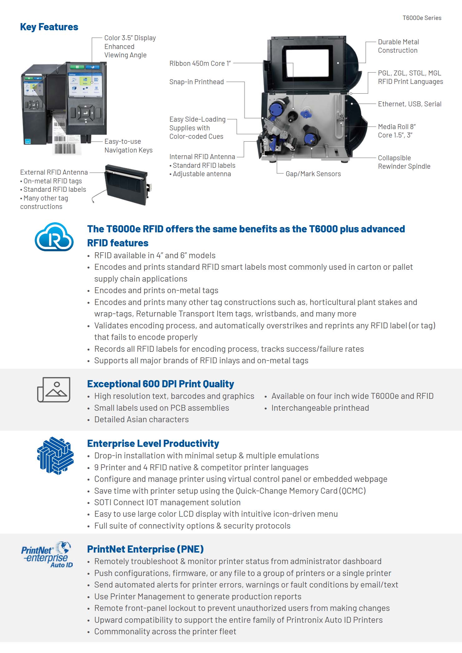 T6000e Series 4 Inch Enterprise Industrial Thermal Transfer & Direct Thermal RFID Printer
