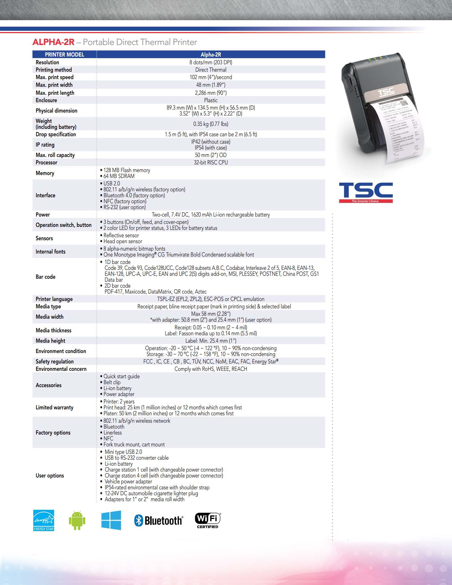 Alpha-2R 2 Inch Portable Direct Thermal Printer