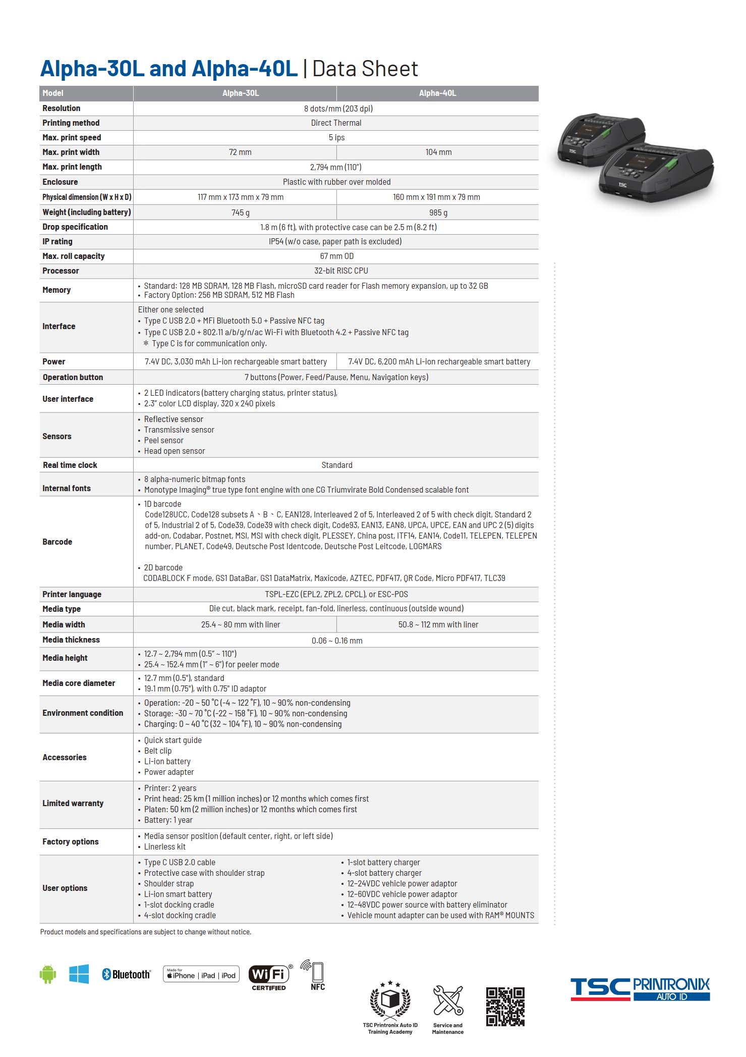 Alpha-30L / Alpha-40L 4 Inch Portable Direct Thermal Printer