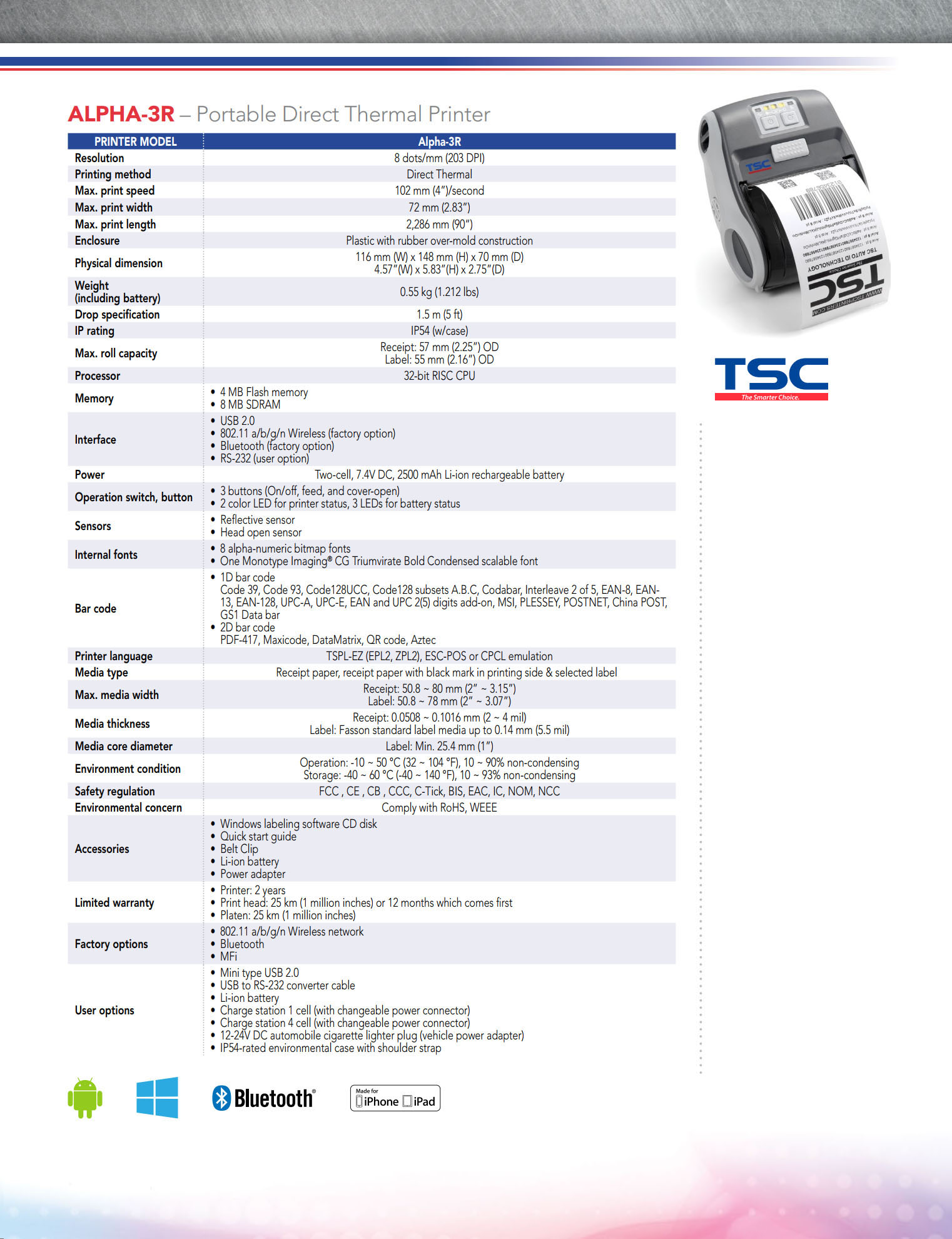 Alpha-3R 3 Inch Portable Direct Thermal Printer