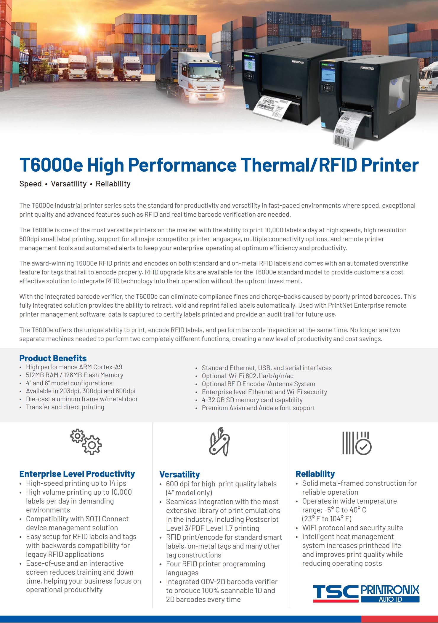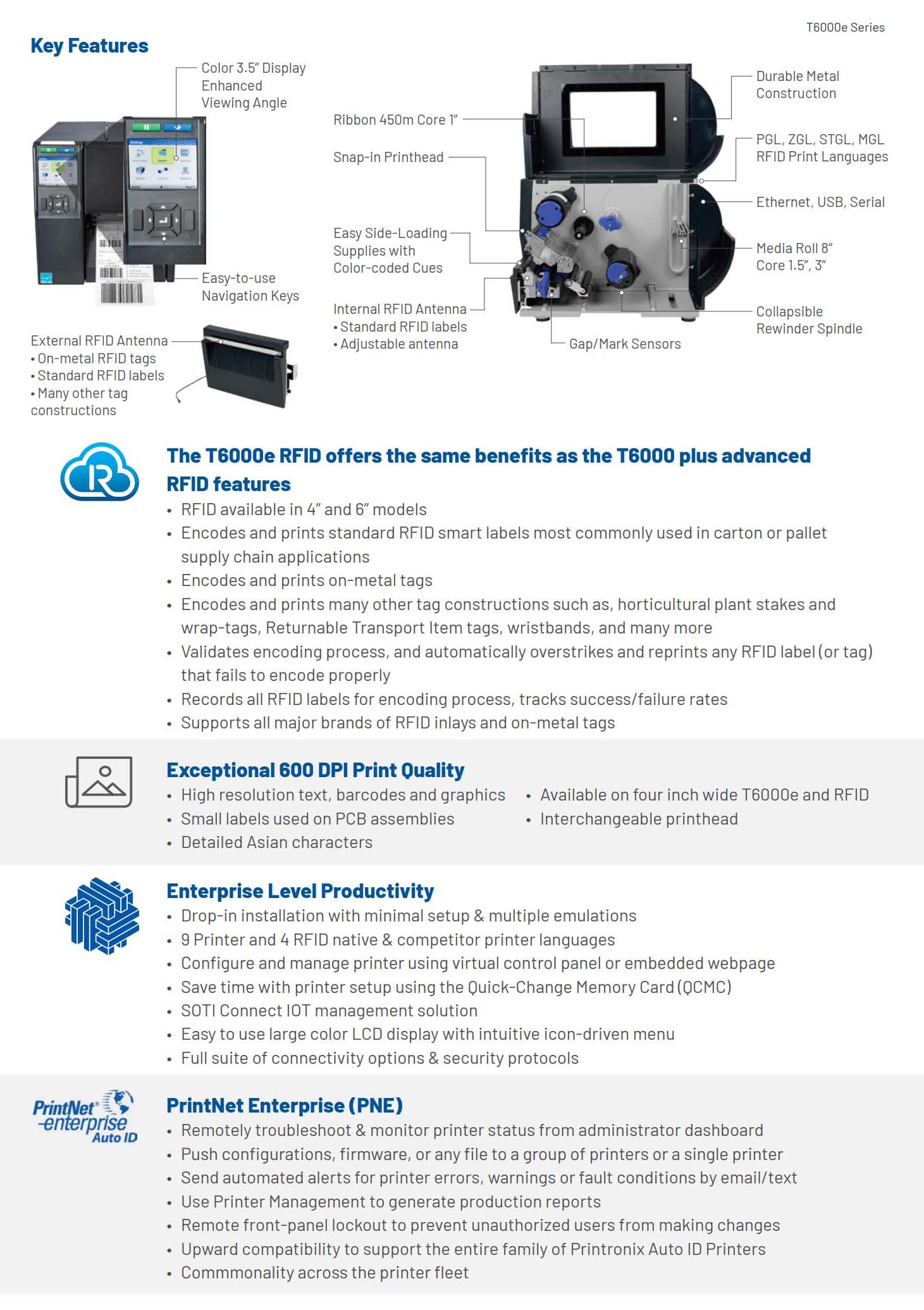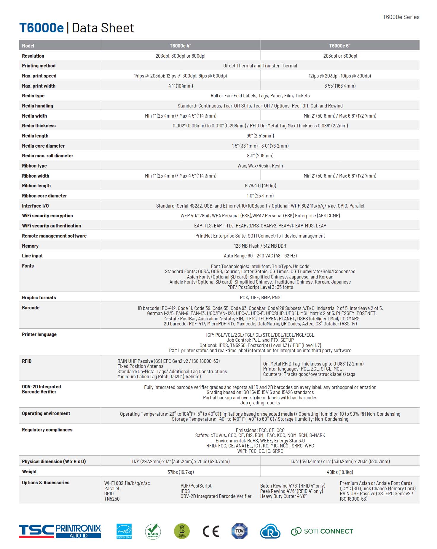 T6000e Series 6 Inch Enterprise Industrial Thermal Transfer & Direct Thermal Printer