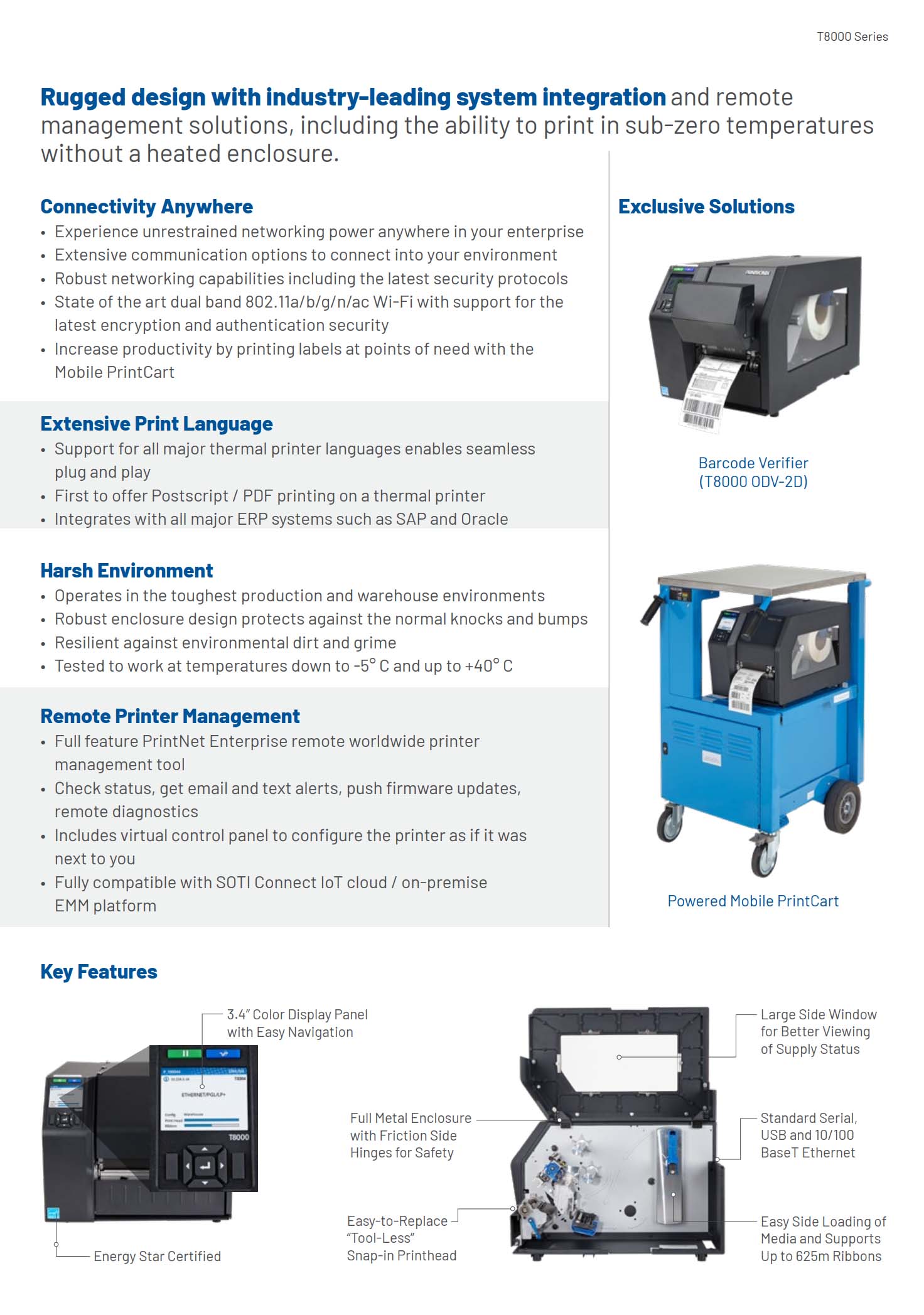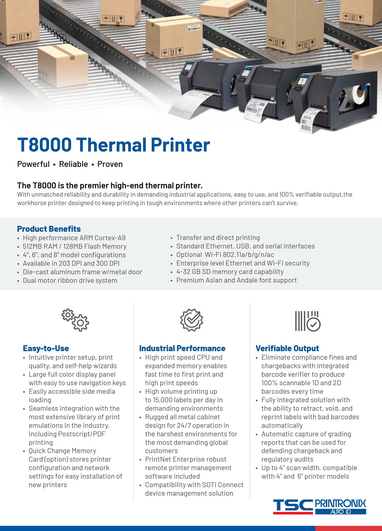 T8000 Series 4 Inch Enterprise Industrial Thermal Transfer & Direct Thermal Printer