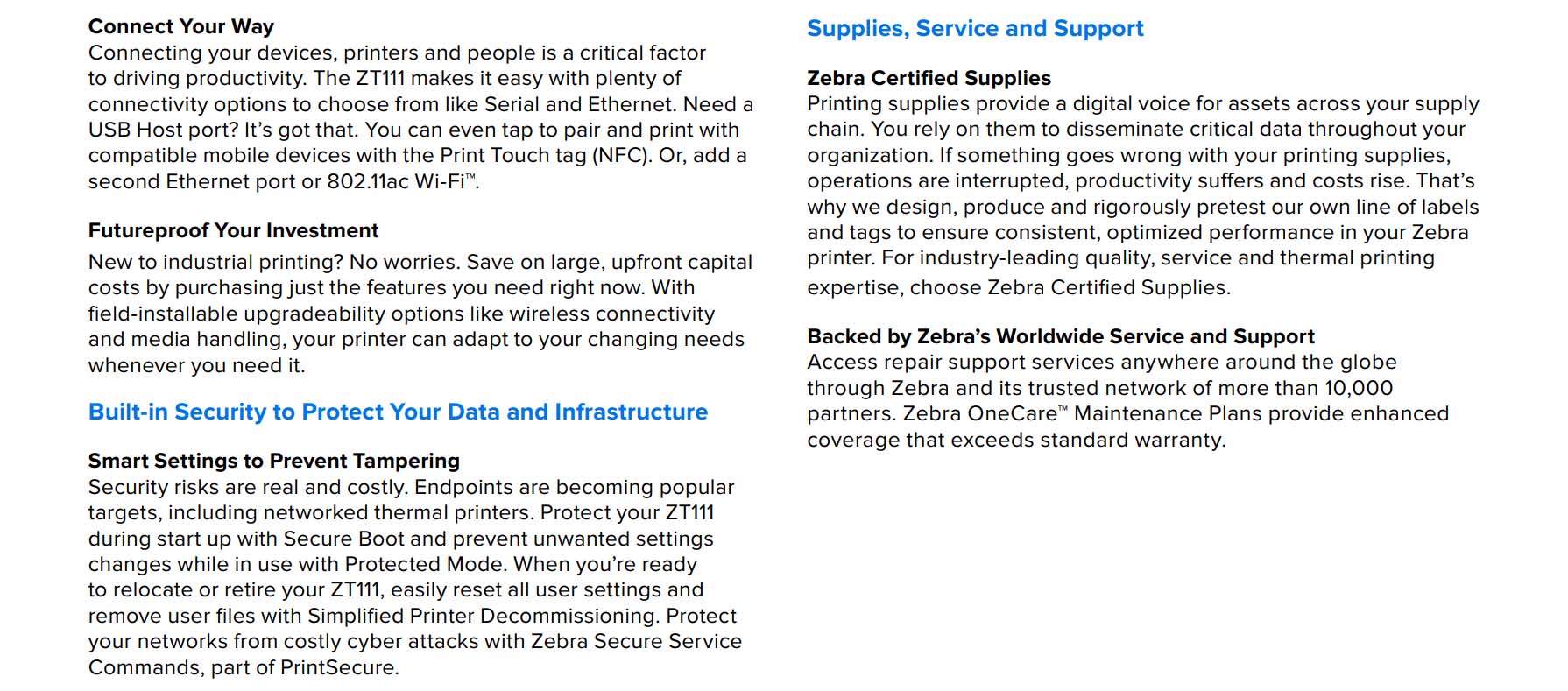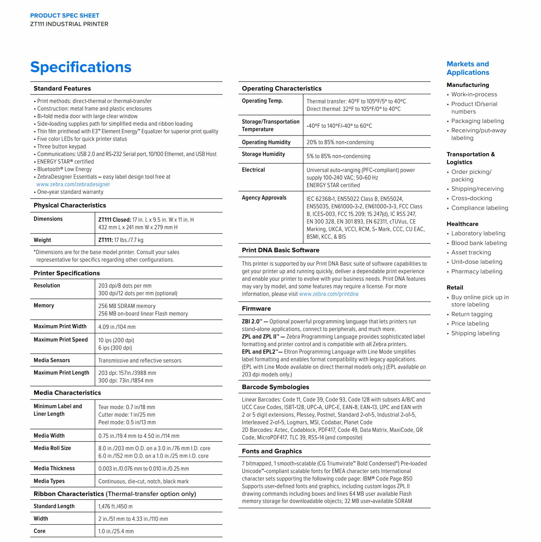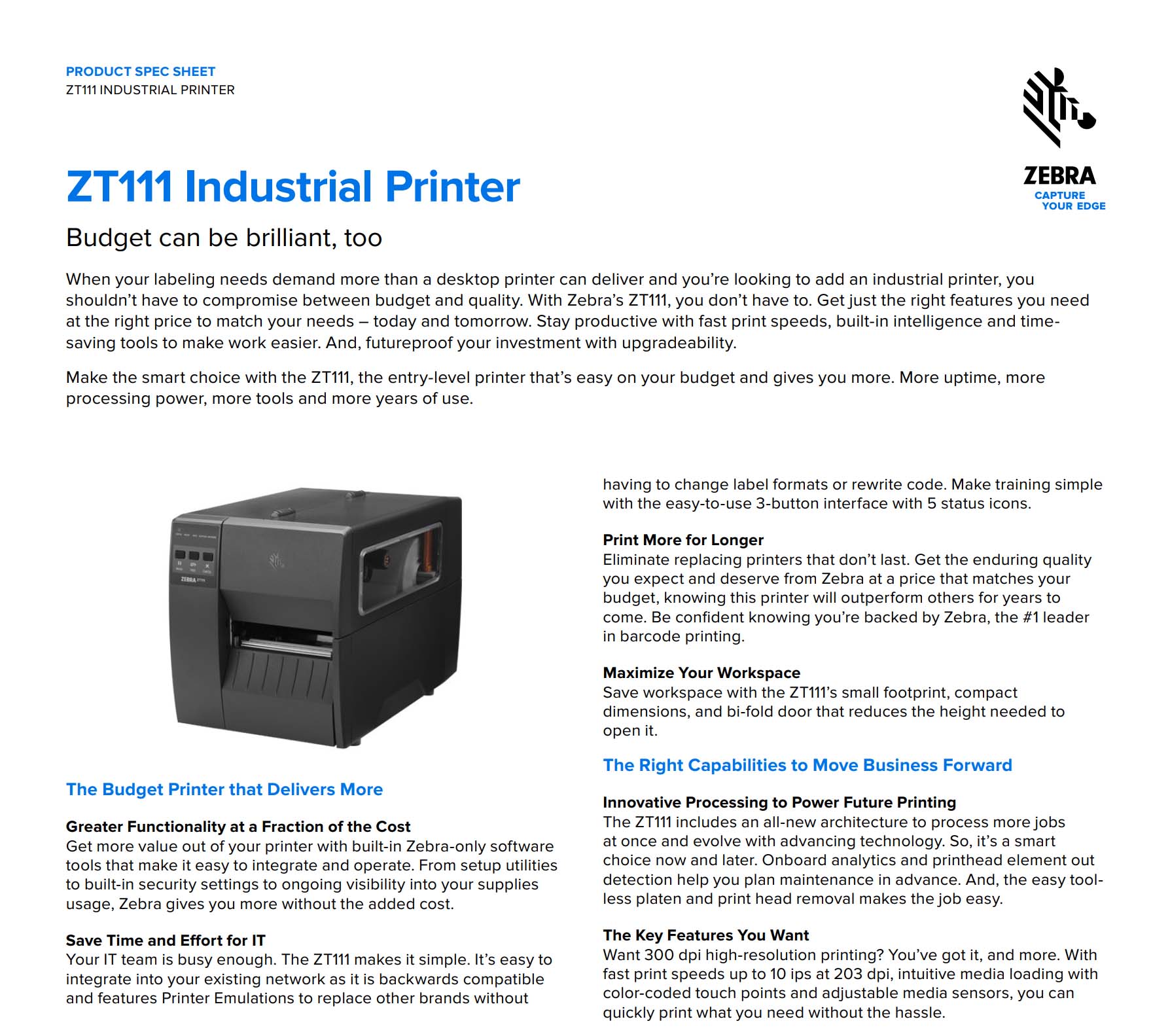 ZT111 4 Inch Thermal Transfer / Direct Thermal Industrial Printer