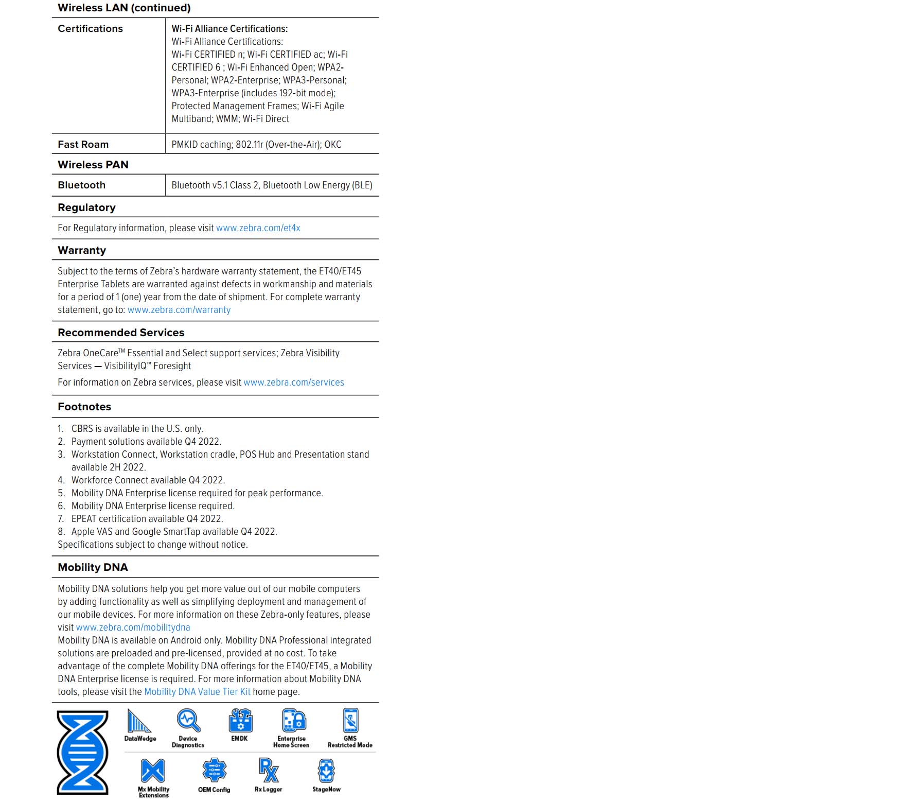 ET40 8 / 10 Inch Wi-Fi Enterprise Tablets