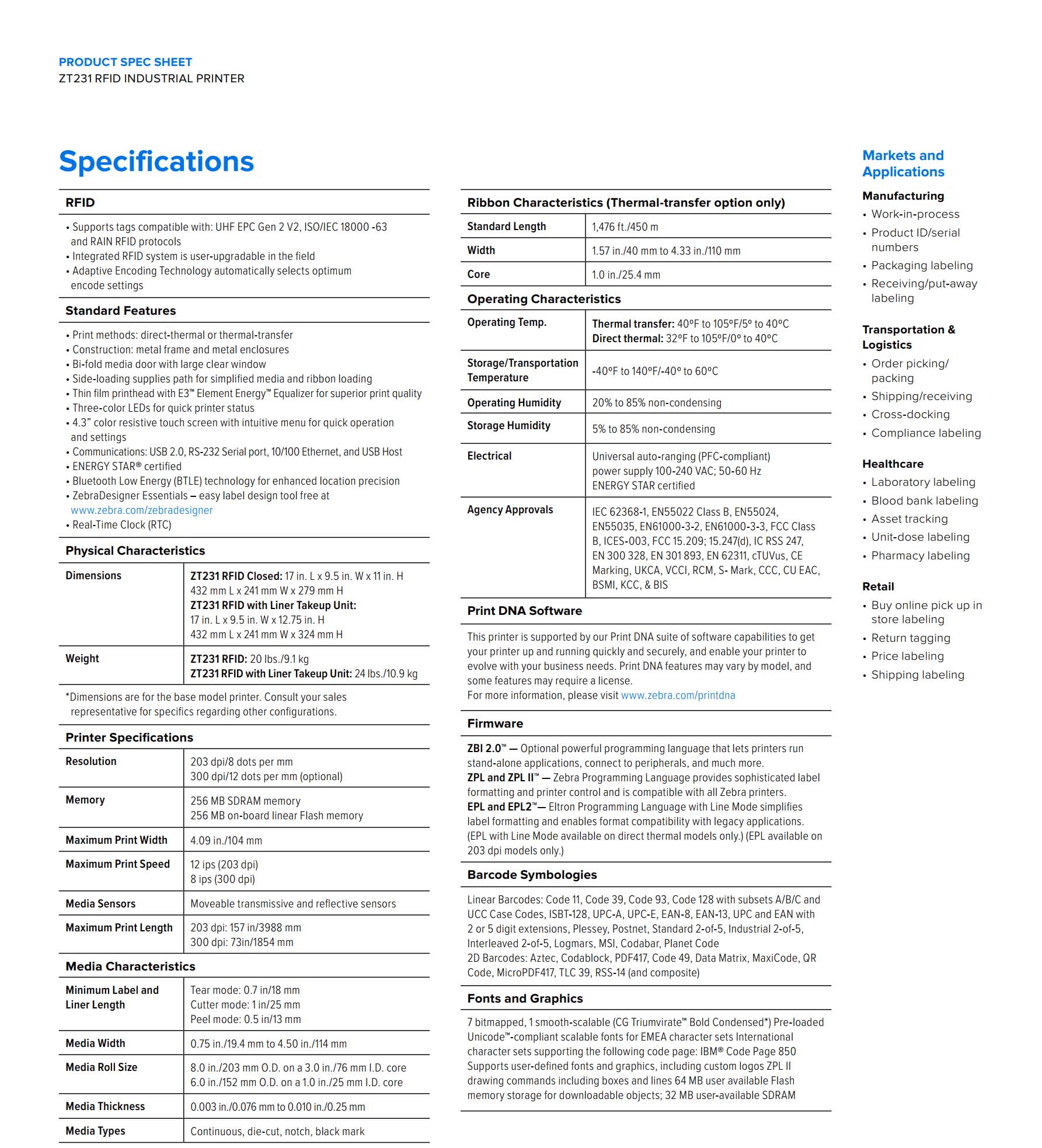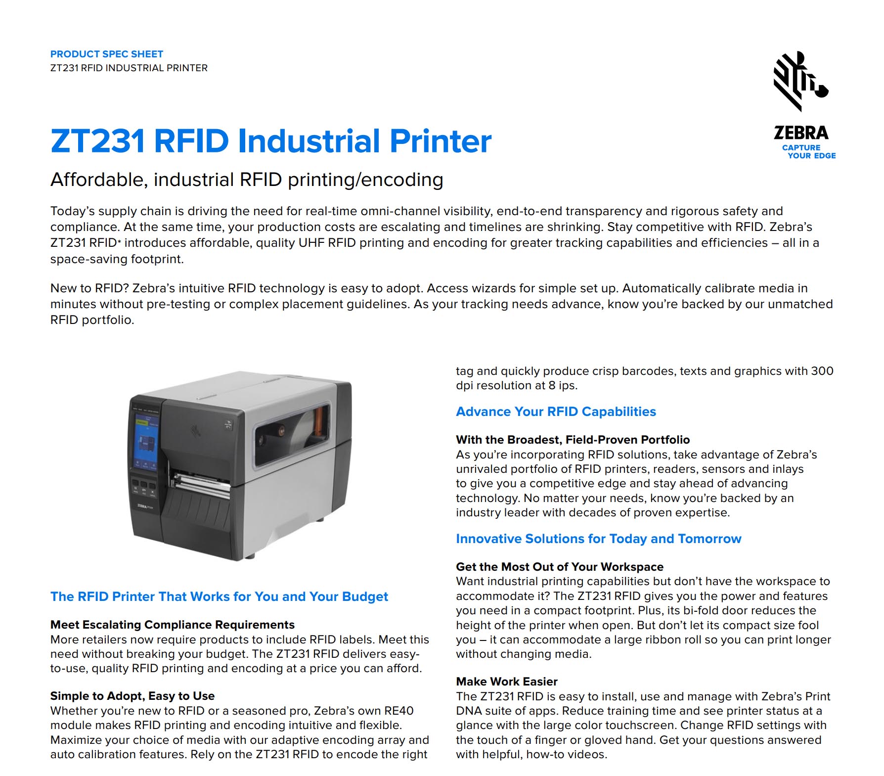 ZT231 4 Inch Thermal Transfer / Direct Thermal RFID Industrial Printer