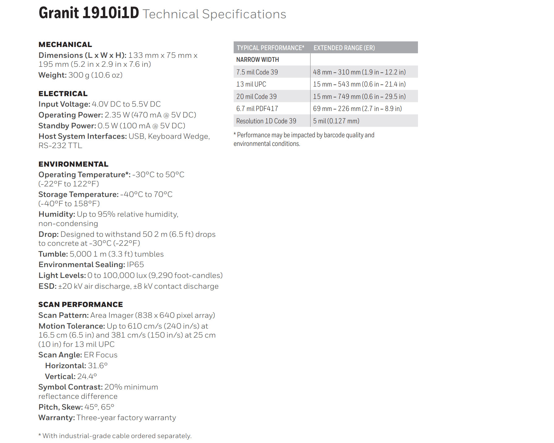 Granit 1910i 1D Industrial-Grade Area-Imaging Scanner