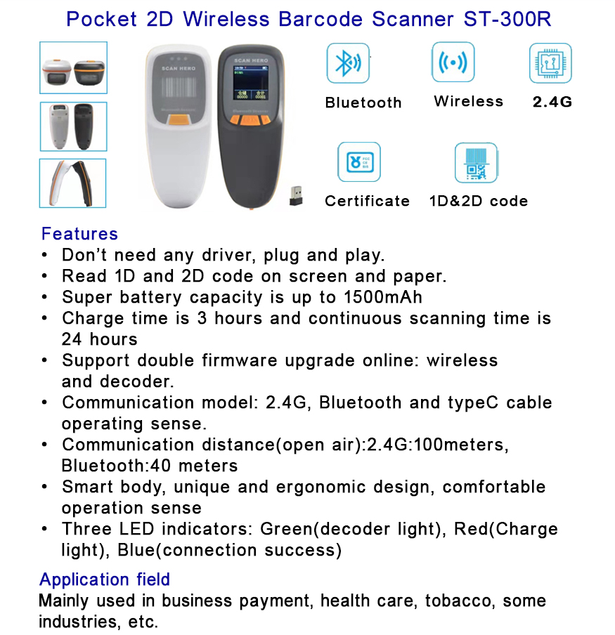 Scanhero ST-300R Pocket 2D Wireless Barcode Scanner